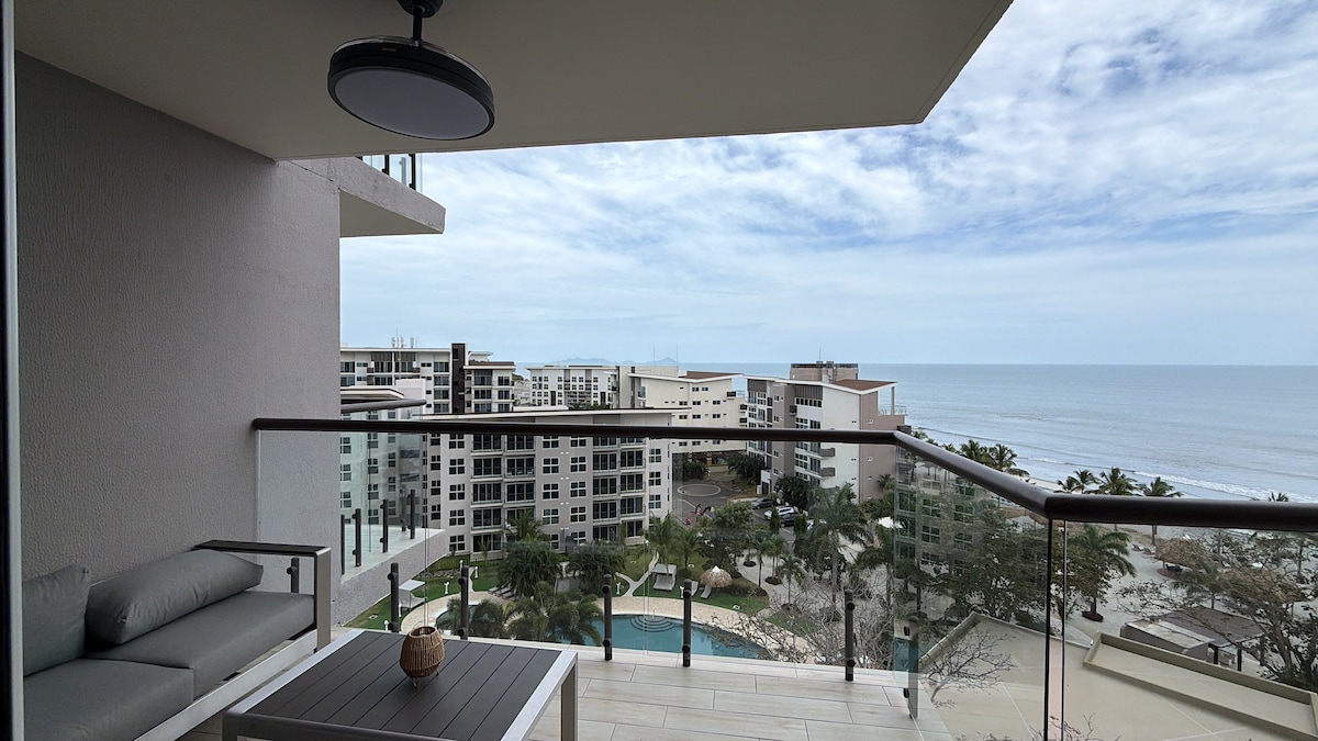 Ti diamo il benvenuto in paradiso! Il nostro appartamento di lusso sulla spiaggia si trova nel mezzo di 24 km di spiaggia di sabbia bianca nel miglior resort di Panama. Guarda le onde dell'oceano che si infrangono sulla riva. Questo è il posto perfetto per vedere l'alba a est con il caffè del mattino o i surfisti mattutini che cavalcano le onde. • Balcone privato di 74 m² + parcheggio gratuito • Magnifica vista sulle piscine, sulla spiaggia e sui surfisti • Comunità recintata sicura e protetta • Accesso ad aree sociali, ristoranti, aree per bambini, lettini e gazebo