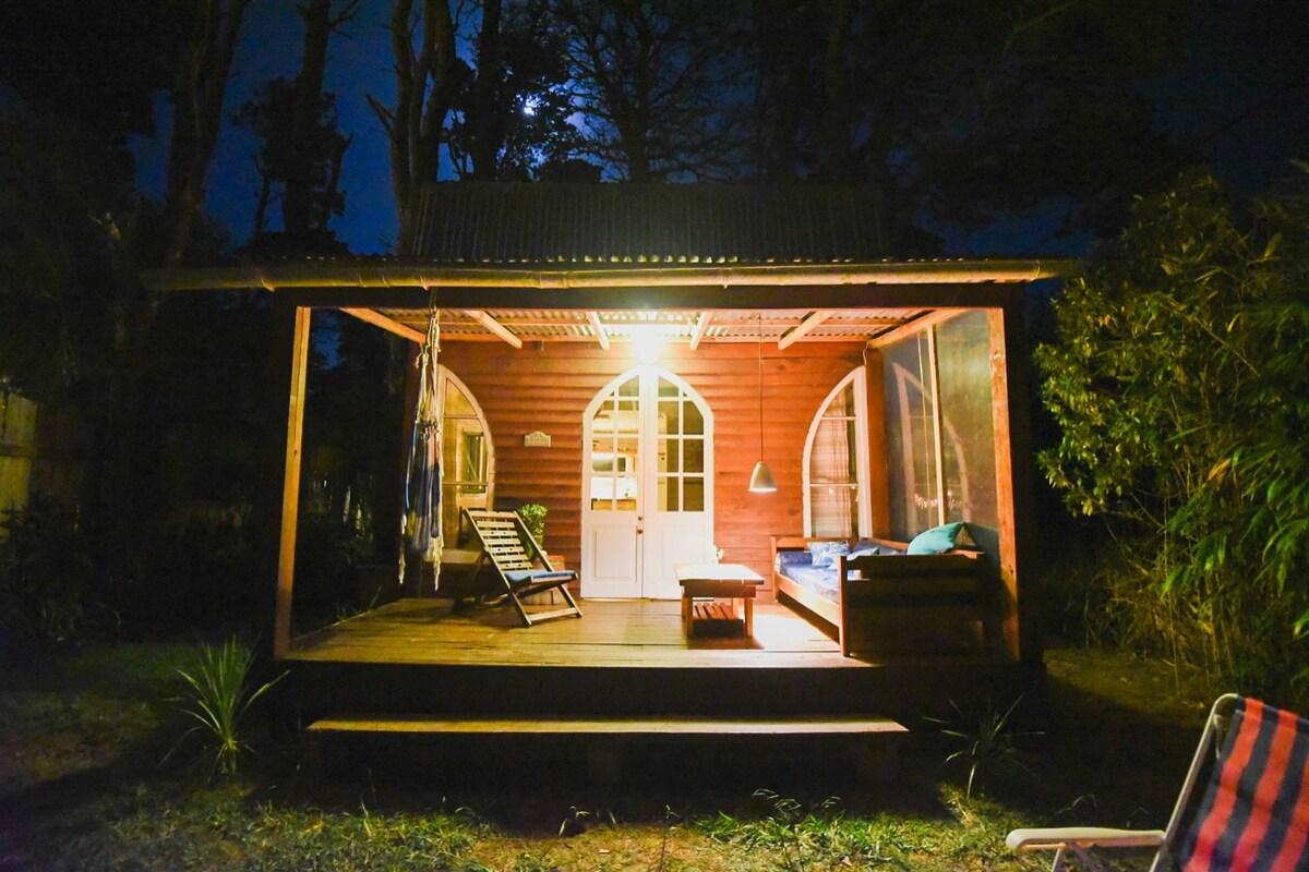 Cottage con tetto quincha, a 5 isolati dalla spiaggia (La Balconada, El Cabito, Los Botes). Supermercato a 2 isolati di distanza. A pochi minuti dal centro di La Paloma. Ampio giardino con barbecue. WiFi. Smart TV (senza cavo). Aria Condizionata. Ingresso privato. Zona forestale. Ideale per rilassarsi! Parliamo inglese. Orario di check-in: dopo le 16:00 Orario del check-out: massimo fino alle 11:00. Non accettiamo animali domestici! IMPORTANTE: stufa (interno) non abilitata per