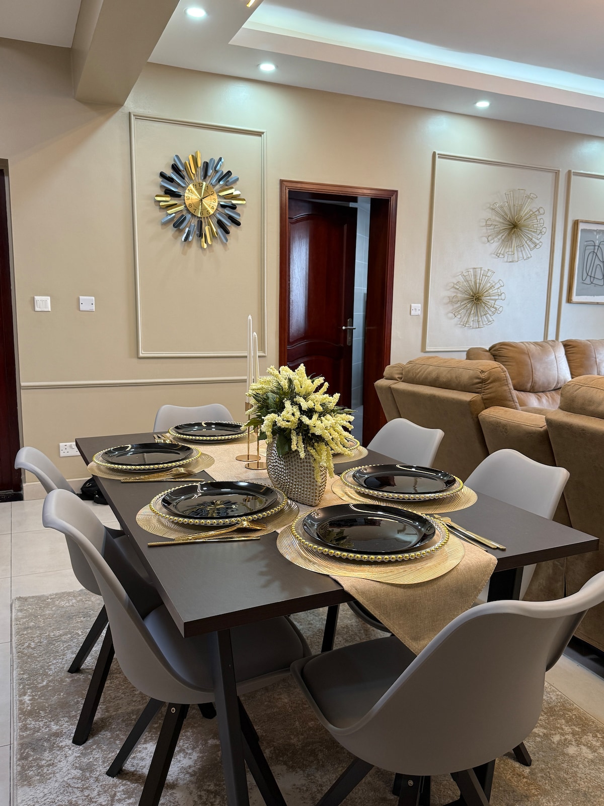 Kick back and relax in our stylish home away from home in Dar ! This modern 2-bedroom apartment offers comfort, convenience, and relaxation. located just off main road for easy access, yet tucked into a peaceful and quiet area. What makes it special Swimming pool for relaxing anytime 24/7 security Strong Wi-Fi – perfect for work or streaming Netflix included Fully equipped kitchen with complimentary drinking water, eggs, and basic essentials Just minutes from shops ,restaurants& market