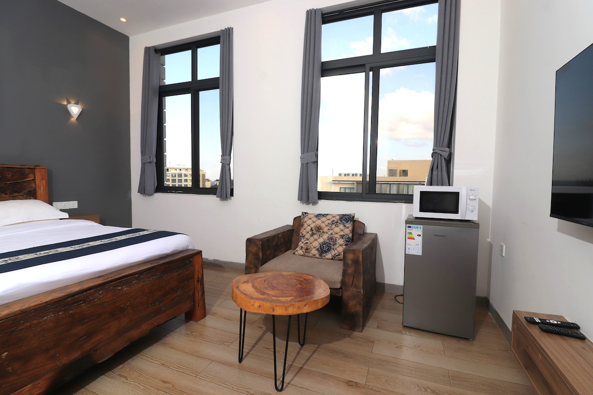 Rifugiati a The Greenhouse, dove calore ed eleganza si incontrano. Il nostro rifugio è stato progettato con letti super confortevoli, luci soffuse e arredi moderni che rilassano e accolgono. Caratteristiche: - Goditi spettacoli e film su una TV da 75 pollici con Netflix, Amazon Prime e YouTube gratuiti. - Resta connesso con il wifi ad alta velocità e un eccellente sistema audio. - Esplora facilmente il centro città, il traghetto di Zanzibar e la vivace vita notturna a pochi passi di distanza. La nostra missione: garantire che il tuo soggiorno sia a dir poco eccezionale