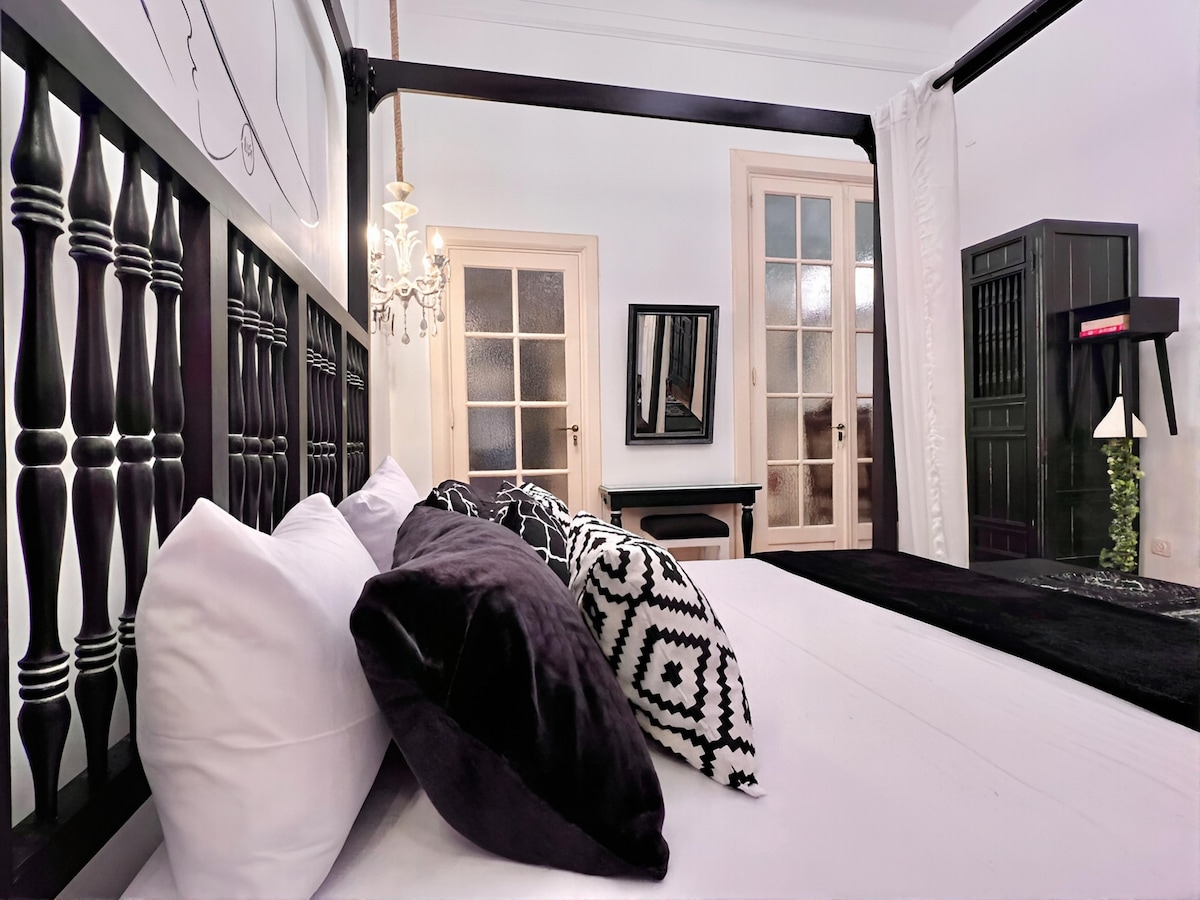 Book your stay at this romantic, recently remodeled one-bedroom apartment with soaring double-height ceilings. Features that set it apart include its prime location in downtown Cairo, a unique open floor plan where you can entertain from the kitchen, and a king-sized bed where two can sleep comfortably and store clothes in the adjacent built-in closet. The modern lounge area opens into a sunny patio with gorgeous views of the city.