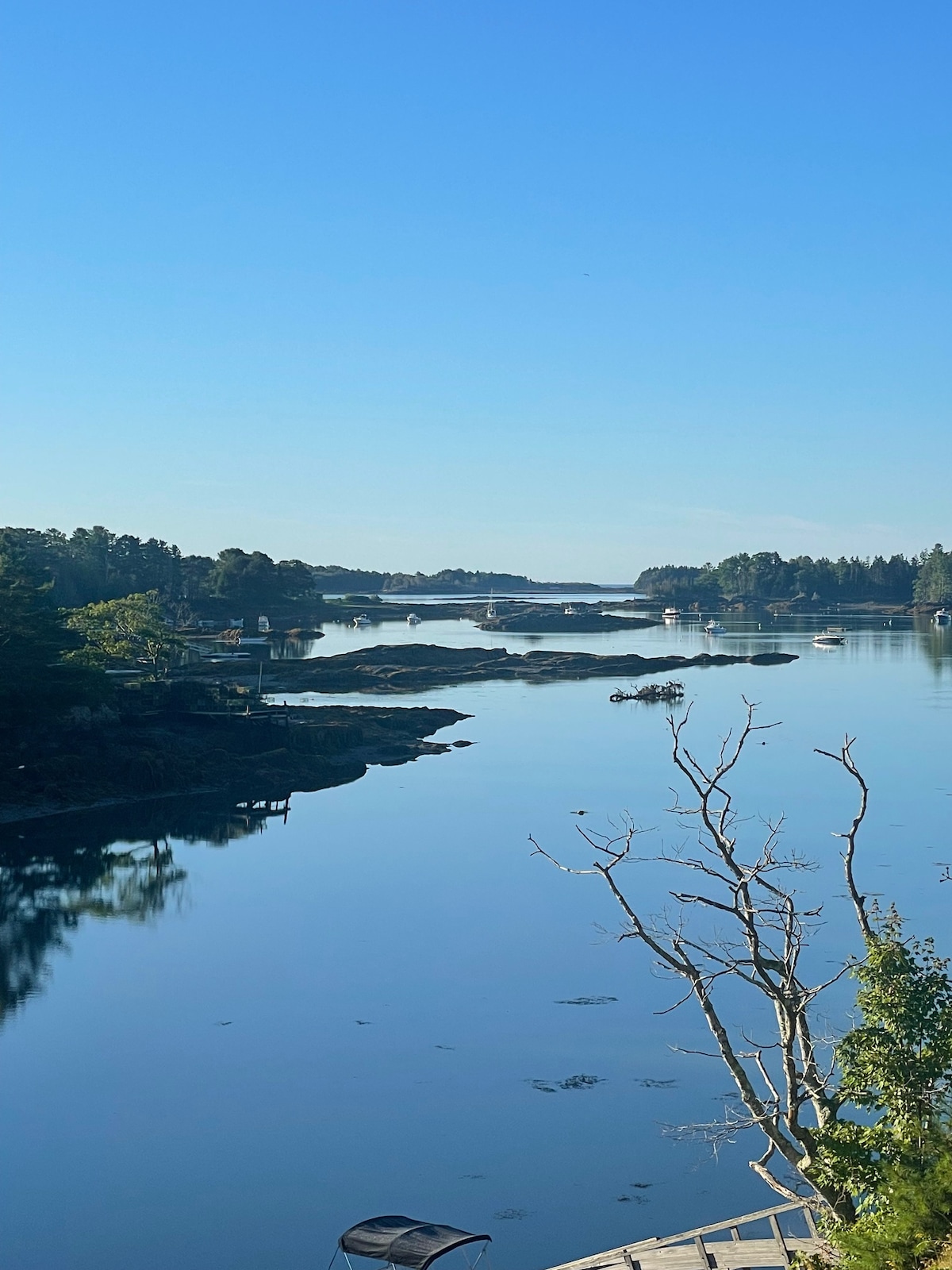 Out of State guests please read the Maine State COVID-19 restrictions currently in affect. Classic Maine cottage on the end of a point, surrounded by water on 3 sides provides stunning views. The perfect backdrop for the quintessential cottage vacation. Features spacious decks, direct tidal access for kayaking, and outdoor firepit. 15 min to downtown Brunswick/45 min to Portland. We even have Kayaks onsite for guests to paddle around Cards Cove. Perfect for couples and families!