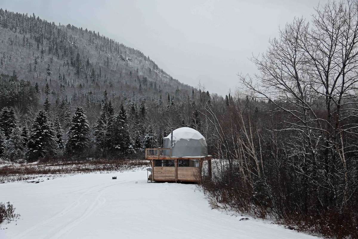 Questa cupola con vista sulle montagne si trova vicino al fiume Jacques-Cartier. A 30 minuti dalla città, a pochi minuti da numerose attrazioni turistiche, potrete facilmente scoprire la città e godervi la vita all'aria aperta, nello stesso giorno! Una visita al Village Vacances Valcartier, un'uscita di rafting, o una passeggiata nel Vieux Québec, le vostre giornate saranno piene! In estate, il fiume è aperto al nuoto e alla pesca, il che renderà il vostro soggiorno in loco.