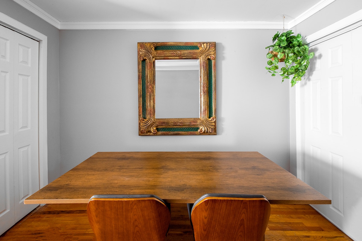 Per prenotare devi avere almeno 25 anni. *Questo è uno spazio tranquillo, poiché viviamo nell'appartamento sottostante. Assolutamente NESSUNA festa e un massimo di 2 persone nella stanza in qualsiasi momento. Questo monolocale al 3° piano, tutto in legno, si trova proprio nel centro della città. A pochi minuti a piedi troverai ristoranti, bar, teatri e collegamenti con New York super facili (treno e autobus). L'appartamento è completamente aperto, ha un ingresso privato, bagno privato, arredi incredibili, parcheggio e tocchi incantevoli ovunque. PACCHETTI ROMANTICI DISPONIBILI.