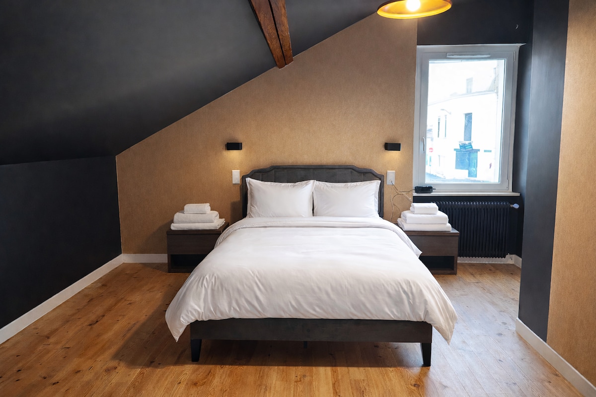 Fate una pausa nella natura in una posizione tranquilla, godetevi la vasca idromassaggio termale o la sauna in totale privacy, a qualsiasi ora del giorno o della notte. Fate lunghe passeggiate nei boschi tutt'intorno o godetevi il letto matrimoniale davanti a uno schermo di 2 metri che può ricevere tutti i vostri programmi preferiti, direttamente dal vostro telefono tramite un videoproiettore...