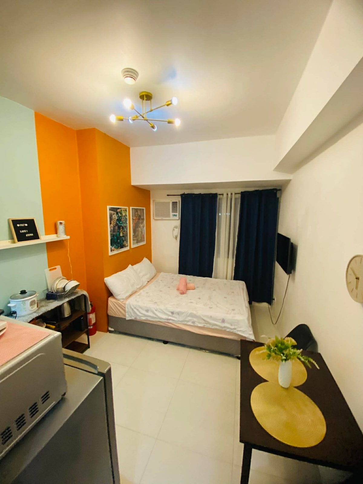 這間充滿東方風情的小套房,以原木家具、山水字畫和柔和燈光打造安靜角落。清晨陽光灑入,適合喝杯咖啡、寫日記。房內配置雙人床、Wi-Fi、冷氣、冰箱與微波爐,可簡單加熱食物,是情侶與單人旅客在馬尼拉灣畔休息充電的小窩。 Questo accogliente monolocale è arredato con mobili in legno orientale, calligrafia e luci calde, creando uno spazio tranquillo per rilassarsi. La luce del mattino entra dalla finestra e potrai gustare il caffè alla scrivania. La camera dispone di un letto matrimoniale, Wi-Fi, aria condizionata, frigorifero e forno a microonde, ideale per viaggiatori singoli o coppie che esplorano la baia di Manila.
