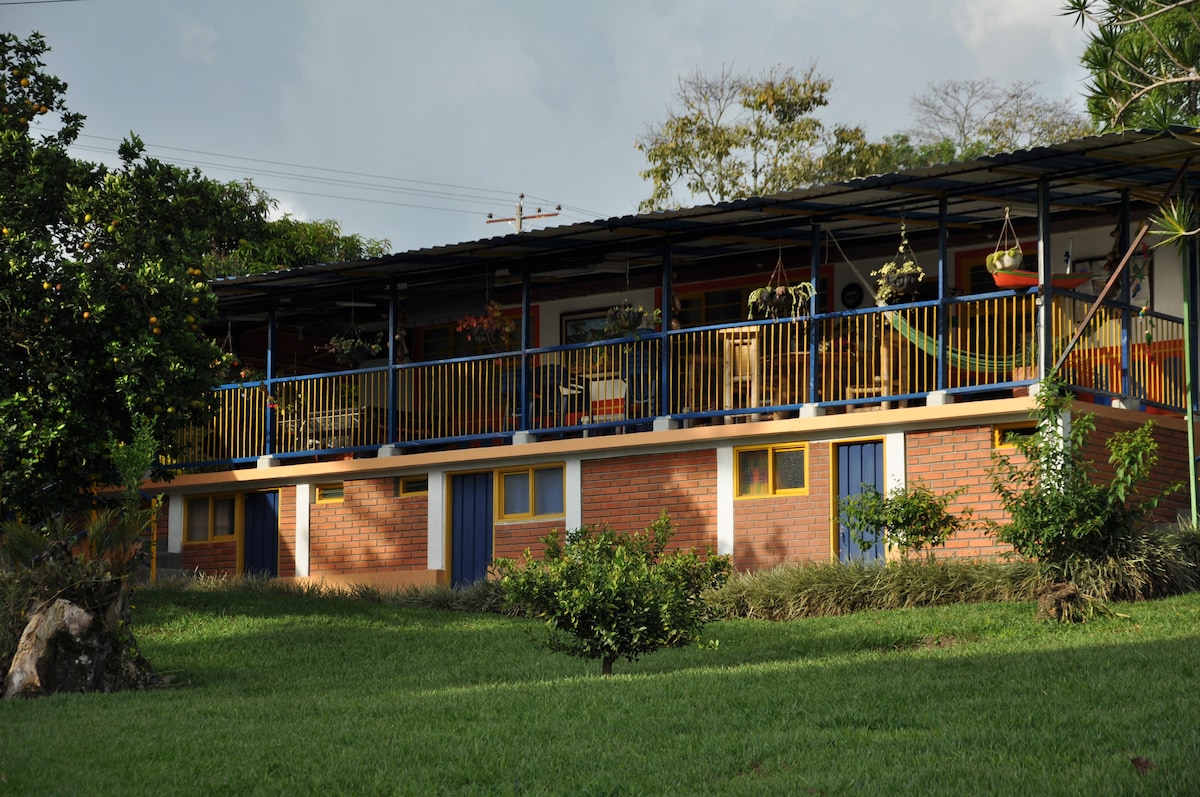 ¡Queremos que amen tanto como nosotros este pedacito de tierra en el corazón del eje cafetero! Habitación privada cuádruple baño privado en Hotel Casa campestre HH. Un lugar donde encuentras paz, espacios para conectar con la naturaleza y confort para disfrutar con tus amigos y familia. Estamos ubicados a 7min de la plaza principal de Quimbaya, 10 min del parque PANACA y 25min del Parque del café.