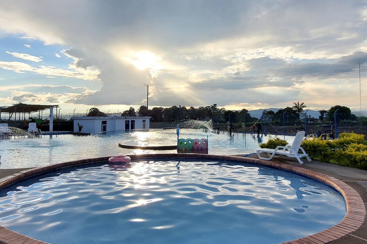 aparta hotel completamente amoblado,un lugar tranquilo y cómodo para descansar y disfrutar en familia,con piscina y juegos infantiles,vista ala cuidad de armenia. ven y disfruta de nuestro eje cafetero estamos cerca a todos los parques turísticos del quindio. parque del cafe a 2km-panaca a 25min -parque los arrieros25min-las bailarinas 25min-salento y vallé cocora