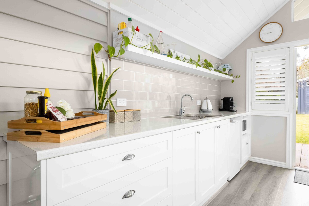 Little Ginger è il rifugio romantico perfetto per le coppie, circondato da alberi di zenzero e da un simpatico gatto rosso di nome Simon che dorme sotto gli alberi di zenzero. Sorseggia champagne nella vasca da bagno all'aperto mentre il tuo partner prepara un pasto sul barbecue Weber Q, o rilassati nel lussuoso letto matrimoniale dopo aver fatto una doccia sotto i doppi soffioni a pioggia. Il monolocale è attrezzato con tutto il necessario, tra cui: tostapane, bollitore, microonde, macchina Nespresso e piano cottura elettrico.