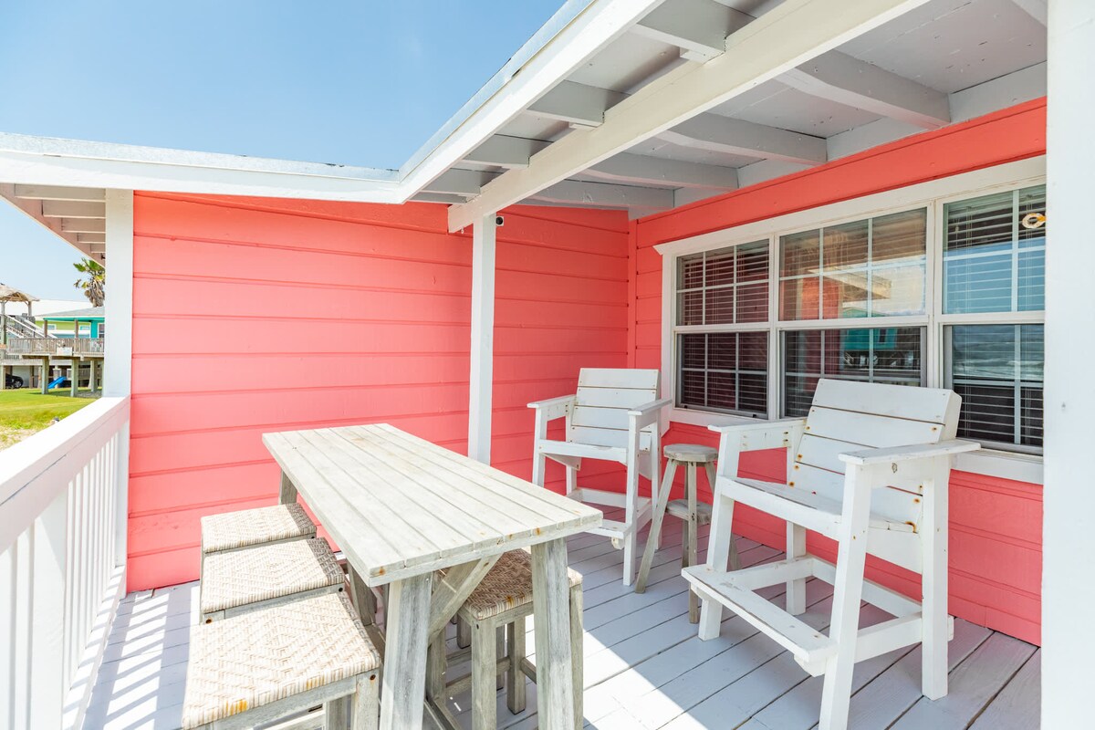NEW Beachfront Construction! Truly a Unicorn:🦄 LOCATION, LUXURY, and So Nice to Have NEW! A pochi passi dai migliori ristoranti e dalla spiaggia di Surfside! Goditi le amache e i giochi sotto casa. Sali i gradini fino a una splendida terrazza ombreggiata con vista dal San Luis Pass fino al molo! Più di 180 gradi panorami senza ostacoli. Camere da letto aperte su SunDeck e osservazione delle stelle con 🔥 braciere YouTube Beachfront Luxe per un video $125 per le spese di pulizia e solo 75$ in totale per un massimo di 2 animali domestici per l'intero soggiorno!