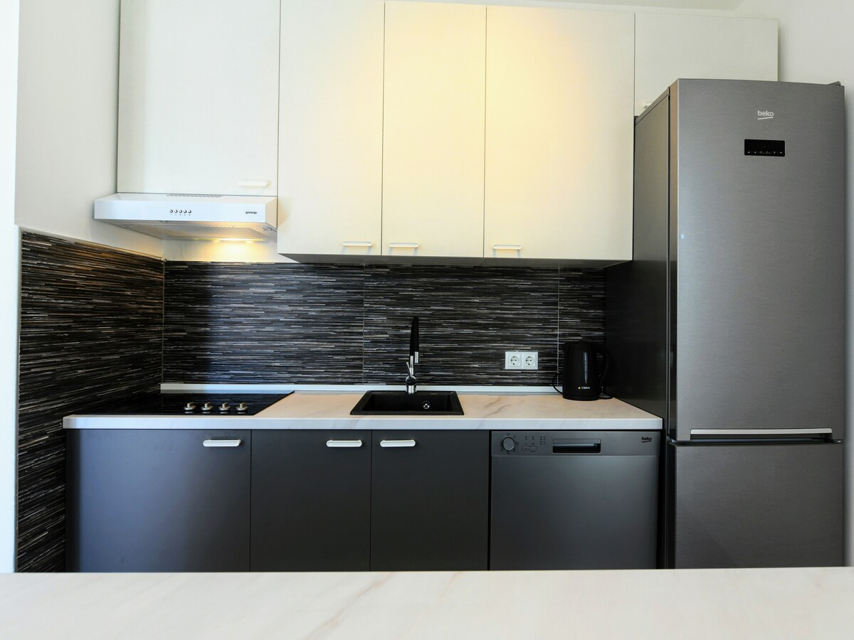 La casa si trova in un quartiere tranquillo, a 30 m dalla panetteria, a 100 m dal mercato, ristorante, caffee bar, 500 dalla spiaggia. Altri posti sono situati vicinissimi, con auto 5-15 minuti. Apartmant è molto bello, pulito e confortevole, WiFi, TV satellitare