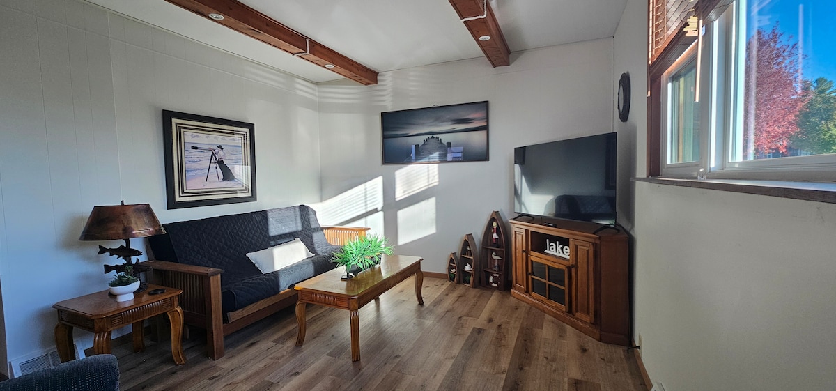 Ti diamo il benvenuto nella tua vacanza in riva al lago. Svegliati con la luce del sole che entra dalle finestre. Sorseggia un caffè con vista sull'acqua. Goditi la barca, il kayak e il nuoto in estate e la pesca, il pattinaggio e la tranquillità delle nevicate perfette in inverno. Rilassati mentre ti godi un tramonto dorato dal tuo molo personale. Goditi gli spazi abitativi aperti, perfetti per cucinare, riunirsi e creare ricordi. Un rifugio accogliente e confortevole, che amerai in ogni stagione. La vita sul lago ti aspetta, vieni a trovarci!
