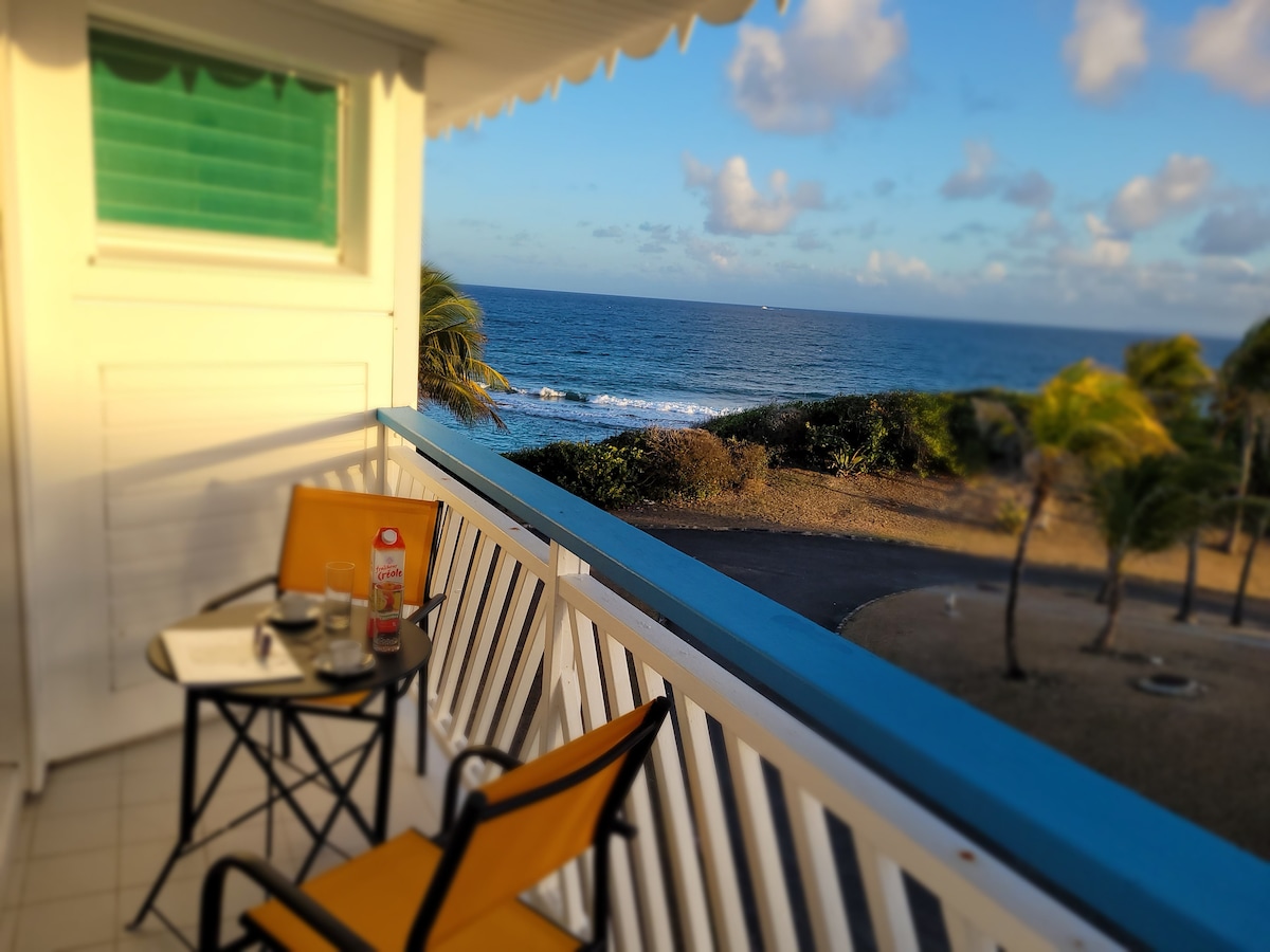 Monolocale per 2 persone (bambino o neonato possibile con letto pieghevole) bella vista mare e piscina con parcheggio in residenza custodita WIFI/ TV SAT Netflix in una splendida zona con spiaggia e piscina, situato a Saint François .2° e ultimo piano della residenza Corail a l'Anse des Rochers ,di fronte al mare e alle cime delle palme, spiaggia di sabbia bianca a 100 metri, piscina a 50 metri. Completamente ristrutturato in uno spirito di design e fascino, climatizzato per il vostro comfort, terrazza loggia con cucina attrezzata.