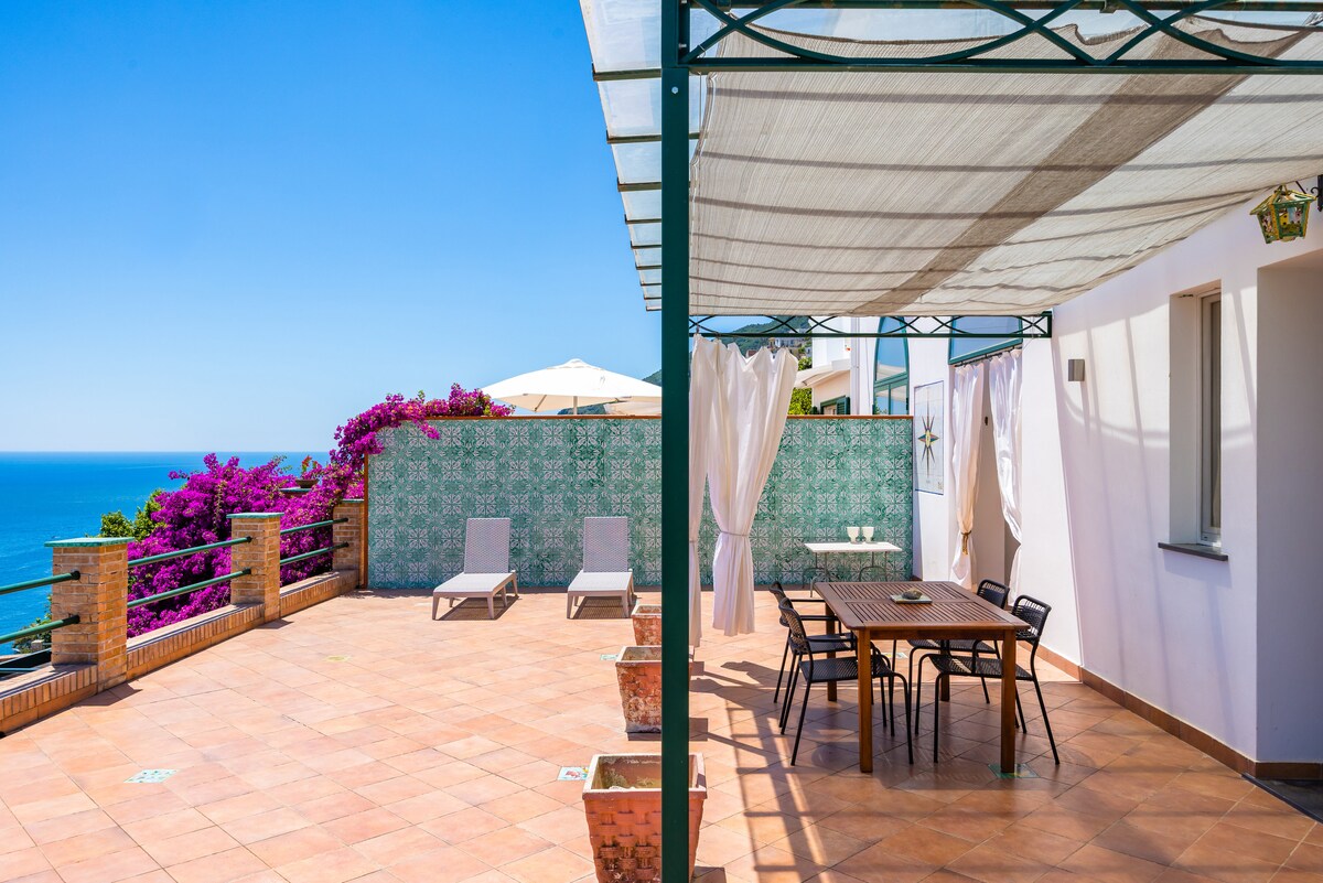 Appartamento completamente arredato. Dotato di 1 camera da letto (matrimoniale), 1 bagno con doccia e lavatrice, ampio soggiorno (con possibilità di 3° letto aggiunto), cucina attrezzata, ampio soggiorno con fantastica vista mare e di Positano. L'appartamento è situato al inizio della scala che porta al SENTIERO DEGLI DEI ed e ‘ accessibile tramite 250 scalini , l appartamento e’ adatto a persone giovani , abituati a fare esercizio fisico!non adatto a persone anziane!