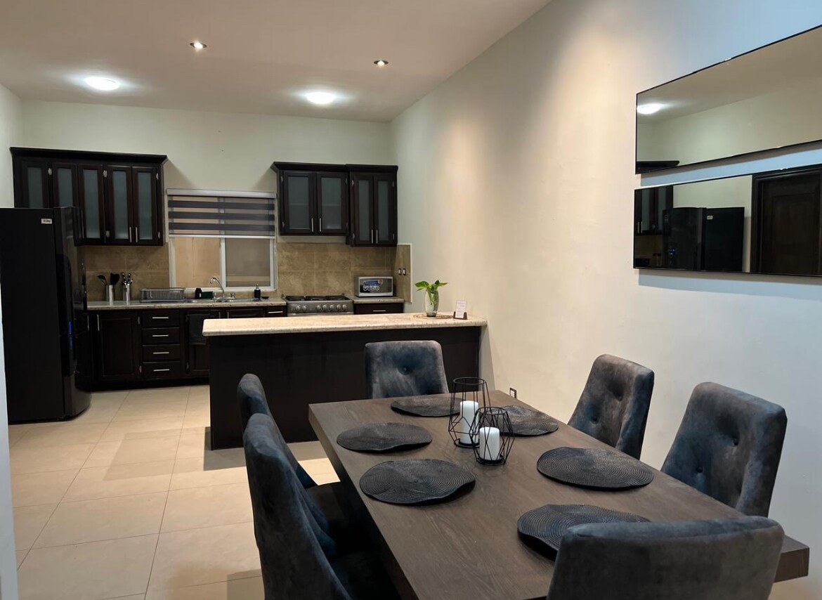 Suite completamente attrezzata, con mini angolo cottura, frigobar, forno a microonde, macchina per il caffè, lavatrice/asciugatrice, cabina armadio, ferro da stiro, asse da stiro, portabagagli, minisplit freddo/caldo, ventilatore a soffitto, schermo da 43" con Wi-Fi e canali locali, garage coperto con cancello automatico di fronte al parco, a un paio di isolati dall'aeroporto internazionale Plan de Guadalupe, quartiere residenziale molto tranquillo.