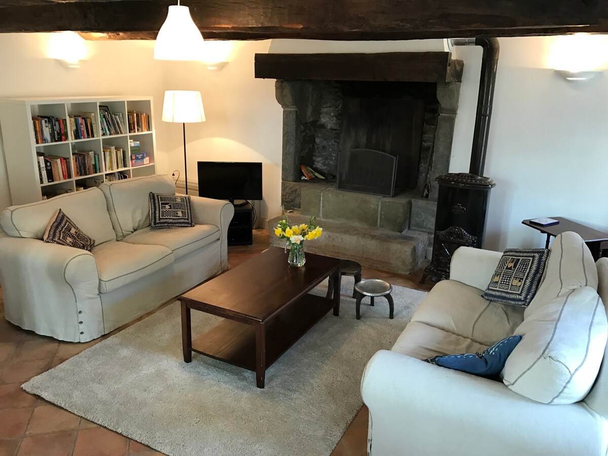 Una bellissima collezione di vecchi cottage in pietra ai margini di un borgo sonnolento a poche centinaia di metri dall'idilliaco estuario di Rance. Accogliente in inverno, con 2 stufe a legna e una splendida estensione da cucina/sala da pranzo, E perfetto in estate con un enorme giardino, patii e boschi. Affittiamo l'intera proprietà a UN gruppo alla volta. È adatto a una famiglia o a un gruppo più numeroso di massimo 8 adulti.