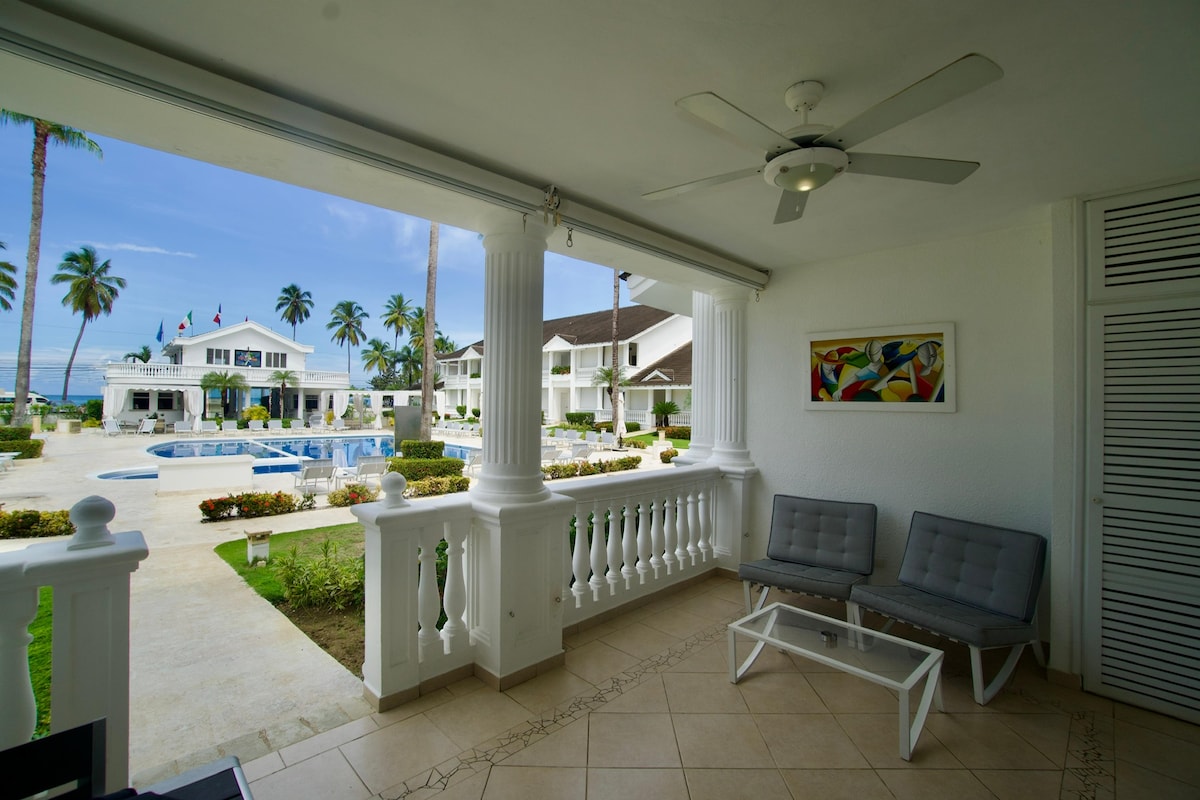 Dimentica ogni preoccupazione in questa ampia oasi di serenità. Questo appartamento si trova all'interno di uno degli hotel più lussuosi (ALISEI) di Las Terrenas. L'hotel offre ottimi bar e ristoranti, spa, una grande area piscina, giardini ben curati ed è una struttura fronte mare! A pochi passi dalla spiaggia di Las Ballenas, una delle migliori e più famose della zona. A pochi passi dal centro città e da tutte le attrazioni della zona. Cucina completa e soggiorno con un grande patio antistante con zona salotto