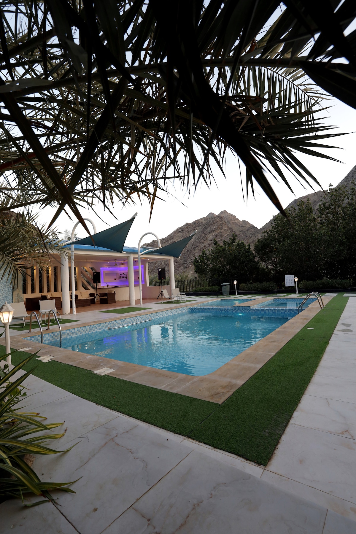 L'alloggio è abbastanza grande (può ospitare facilmente 25-30 persone) ma i posti letto sono limitati (12 persone). Goditi l'aria fresca tra le montagne e la natura degli Emirati Arabi Uniti in questa fattoria in stile resort recentemente ristrutturata.