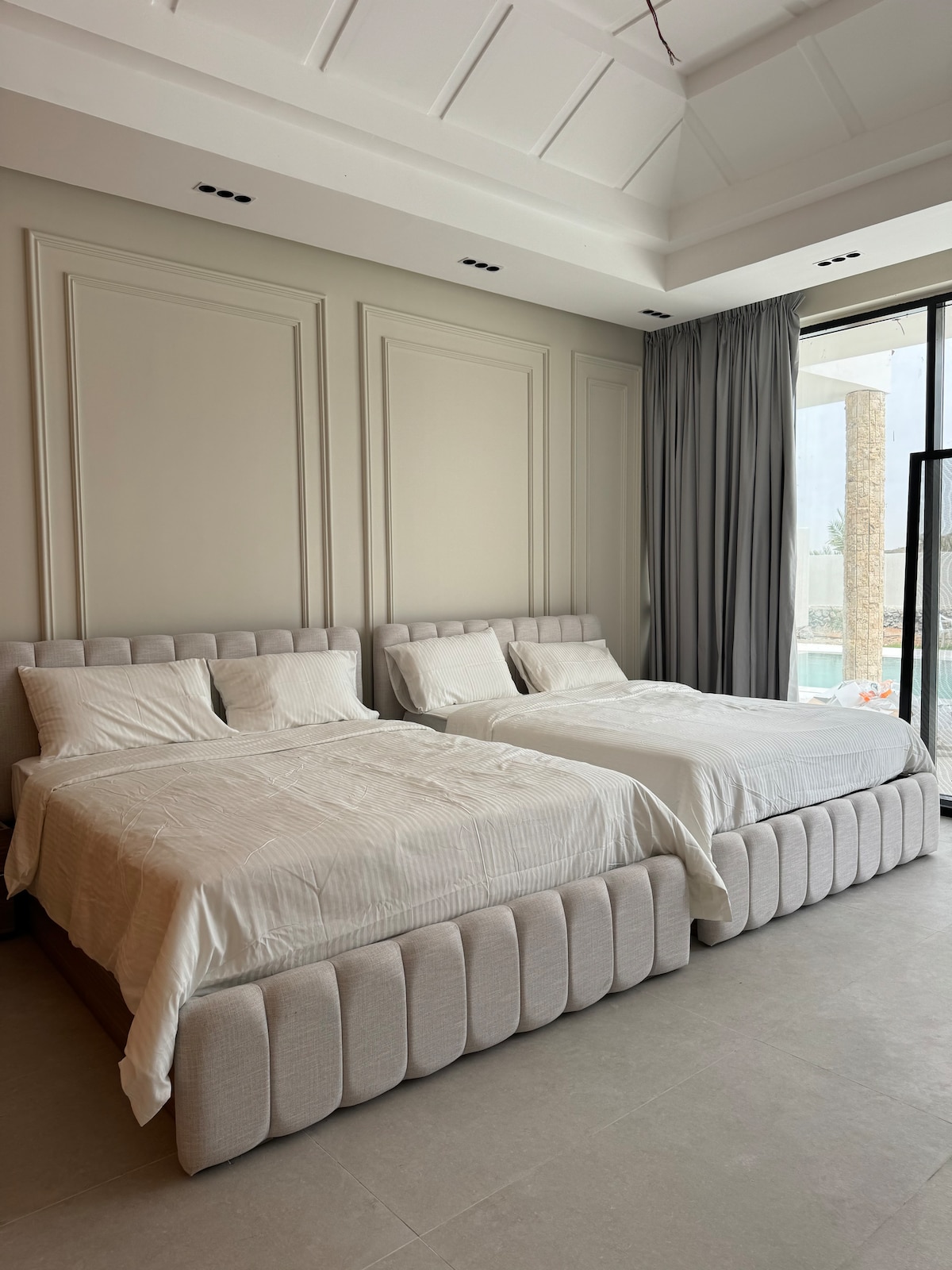 La villa privata dispone di un ampio soggiorno di lusso e quattro accoglienti camere da letto con letti matrimoniali grandi. C'è anche un divano letto, una culla e 4 materassi pieghevoli extra. Gli ospiti possono usufruire di due cucine completamente attrezzate e di cinque bagni. La villa vanta una piscina di 8x4m con una profondità di 1,3 m, un'area giochi per bambini, e ottimi posti a sedere all'aperto con attrezzature fitness e zona barbecue a gas. È disponibile una lavanderia. Una lady helper dedicata sarà al vostro servizio per tutta la durata del soggiorno.