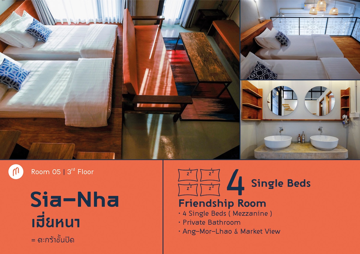 Alloggio in stile rustico moderno, accogliente e armoniosamente progettato con storie di vita locale che ruotano attorno a credenze, negozi e ristoranti popolari. È comodo fermarsi a mangiare o fare shopping. Tra i primi mercati freschi nel centro storico di Phuket. A pochi passi da tutti i luoghi interessanti del centro storico; *Santuario di Jui Tui e santuario di Pudjor *Centro gastronomico locale "Jum Cha" *Museo thailandese di Phuket *Museo Peranakannitas *Stazione degli autobus pubblici locali "Pho Thong" *Mercatino domenicale e così via.