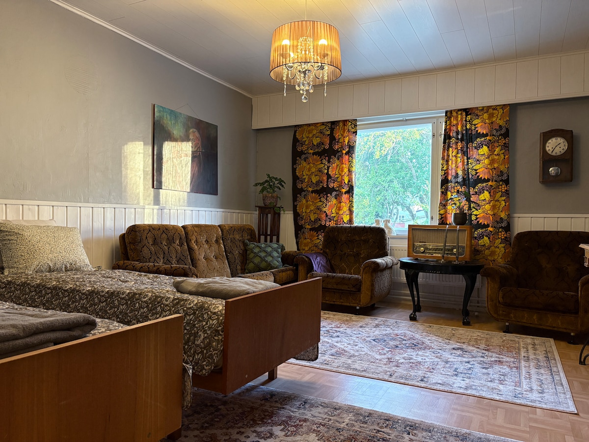L'appartamento nel cuore della Vecchia Rauma è luminoso e alto (incluso un soppalco per dormire), e l'ospite ha un'ottima sauna con una stufa che si riscalda in pochissimo tempo. L'appartamento è arredato personalmente e l'amore dell'host per gli oggetti antichi è chiaramente evidente. L'appartamento può ospitare quattro persone: un letto matrimoniale e due materassi a pavimento. Inoltre nell'appartamento è presente un divano. L'appartamento è più adatto per viaggiatori singoli o individuali, o per una piccola famiglia.
