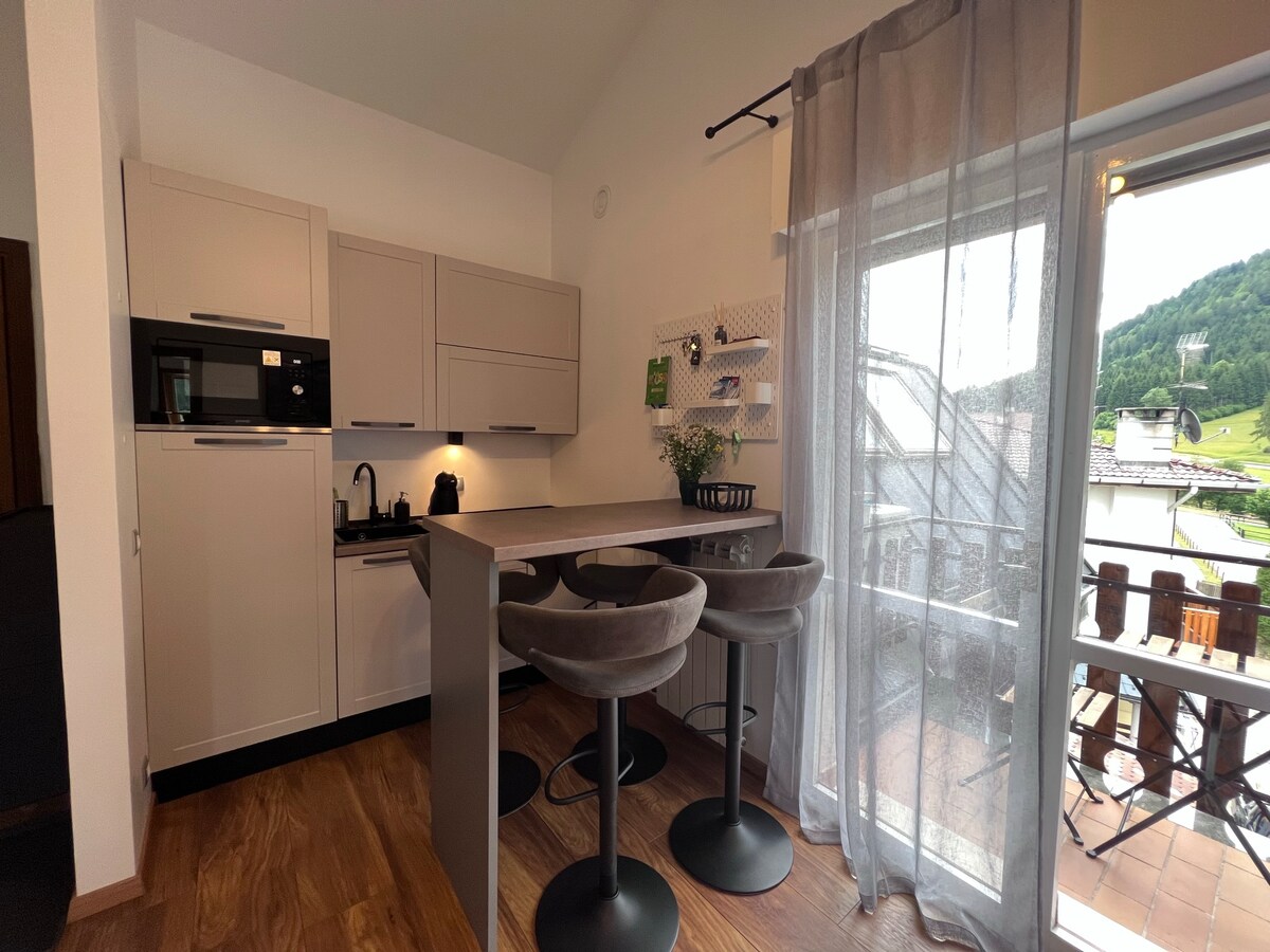Appartamento al piano terra recentemente ristrutturato con entrata indipendente, composto da vano entrata, salotto con divano letto e cucina con stufa a pellet, camera matrimoniale, ampio bagno con lavatrice, finestrato e dispone di una grande doccia. La struttura gode di molta luce ed è arredato in stile rustico con perline a vista, tipico della montagna. L'appartamento è dotato di tutto l'occorrente. CIN IT030081B5YKUCS5RC