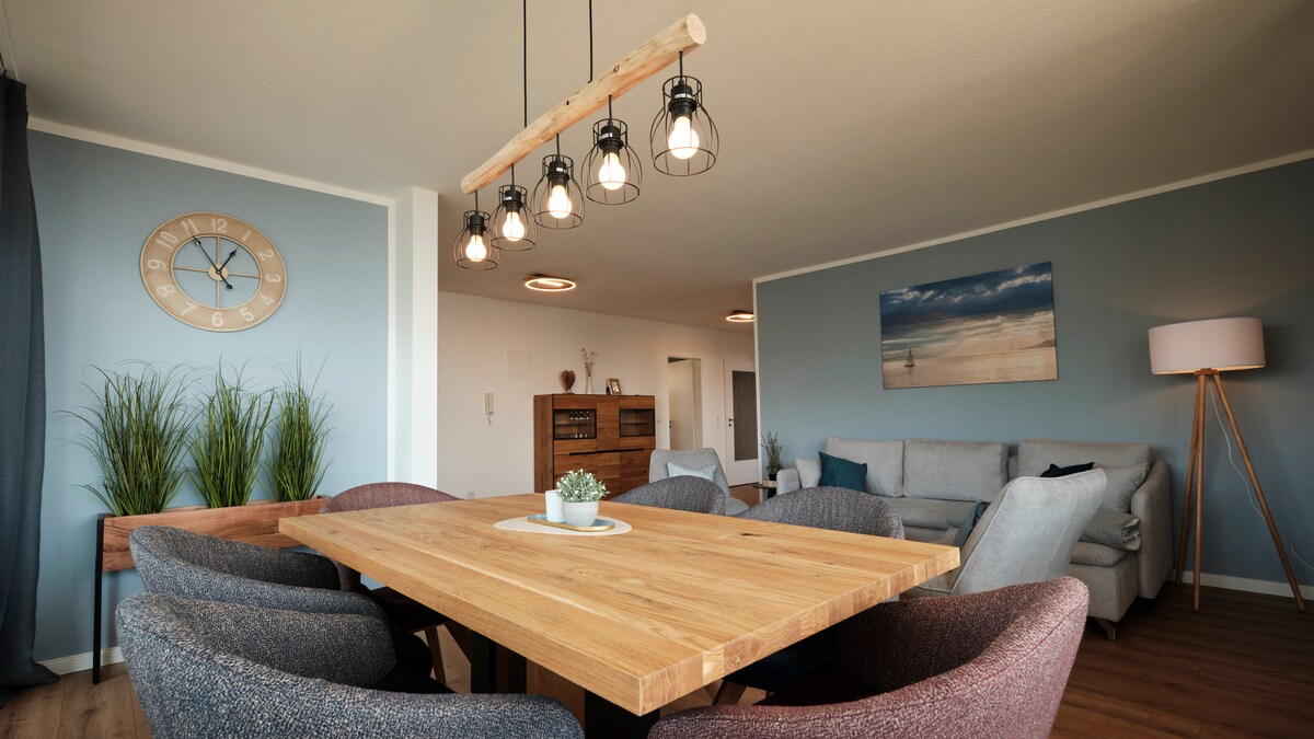 Tranquillo appartamento di 2,5 locali in una nuova costruzione moderna: - senza barriere architettoniche / 56m². - camera da letto, bagno e soggiorno con angolo cottura completamente attrezzato (incl. piano cottura a induzione, lavastoviglie, forno e macchina per il caffè). - Ampia terrazza con barbecue a gas. - schermo piatto (incl. TV via cavo e raccolta di DVD con film). - Playstation 4 Pro (i giochi possono essere noleggiati gratuitamente). - L'appartamento è ecologicamente molto sostenibile (riscaldamento bioenergetico e casa ad alta efficienza energetica) - Incl. carta ospiti "Echt Bodensee Card"