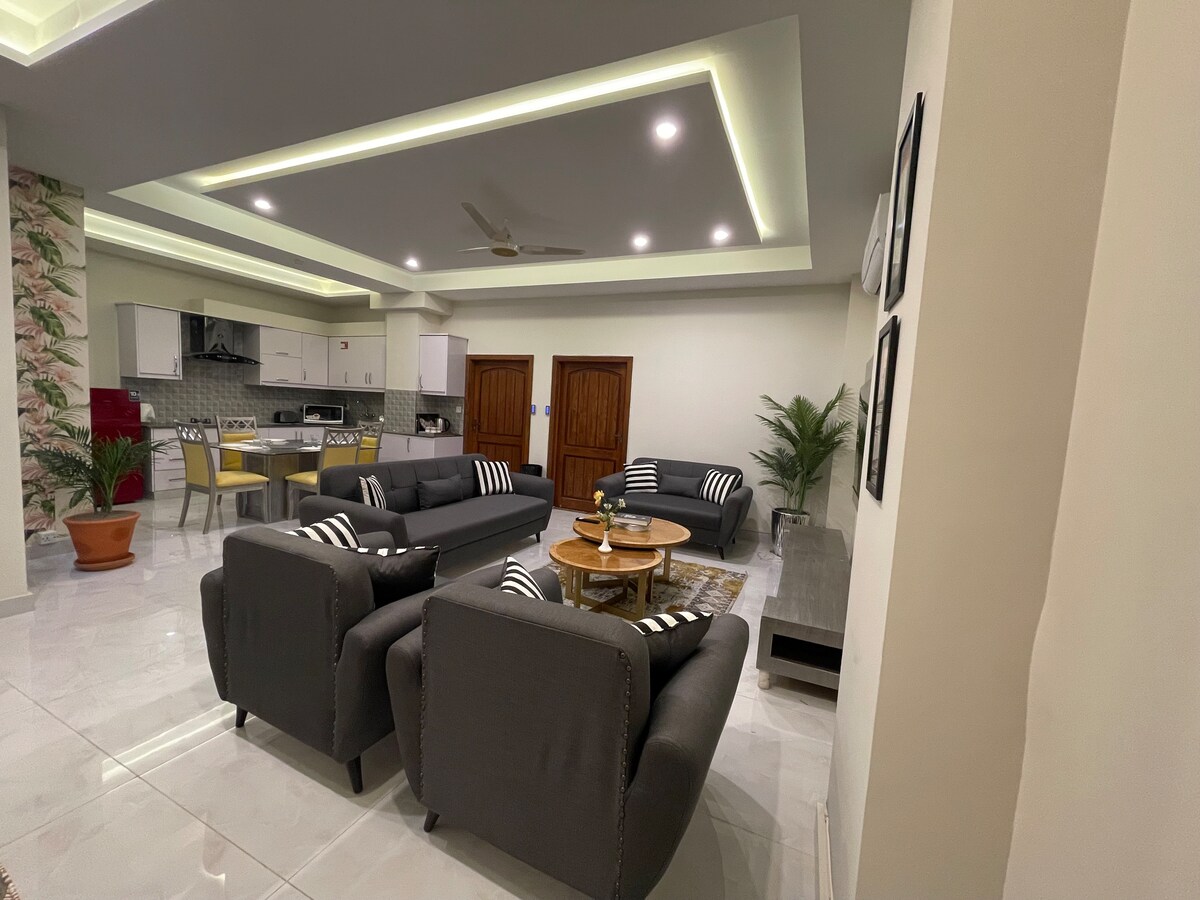 Welcome to Maskan Dens, your luxury home away from home. This stylish designer 1-bedroom suite in Bahria Town Phase 8 offers comfort, elegance, and modern living. Enjoy high speed WiFi, a Netflix ready Smart TV, and seamless self check-in. Located in a peaceful gated community with 24/7 security, minutes from Giga Mall, Amazon Mall, and Phase 7 Food Street. Perfect for families, couples, professionals, or long-term stays. Feel at home the moment you arrive. Book now for a memorable stay.