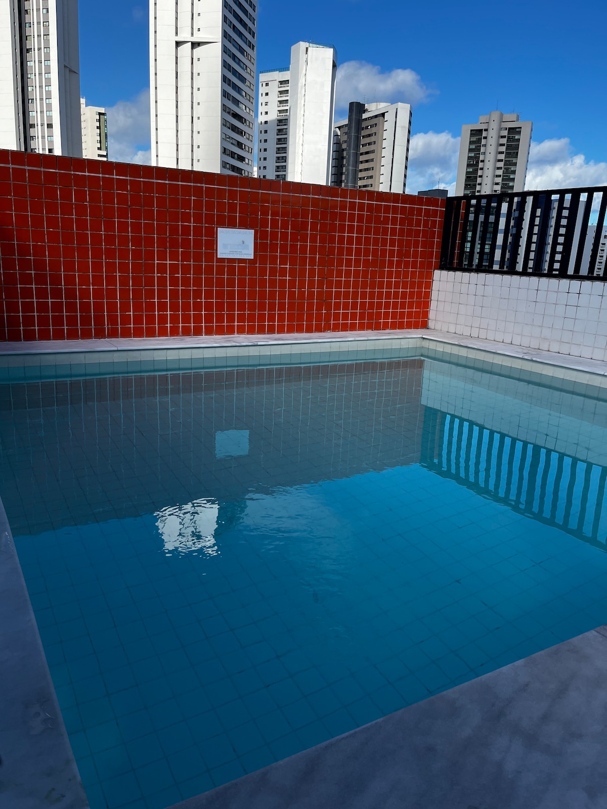 Studio confortável e bem decorado num prédio com estrutura excelente e muito bem localizado no bairro de Boa Viagem. O prédio é excepcional com destaque para o Rooftop que é de tirar o fôlego com piscina aquecida e hidromassagem. Ainda conta com academia, lavanderia inteligente, mini mercado, recepção 24h, coworking, guarda volumes e garagem. Próximo à praia (8 min de caminhada), ao aeroporto (10min de carro), de padarias, supermercados, restaurantes, salões de beleza, barzinhos e farmácias.