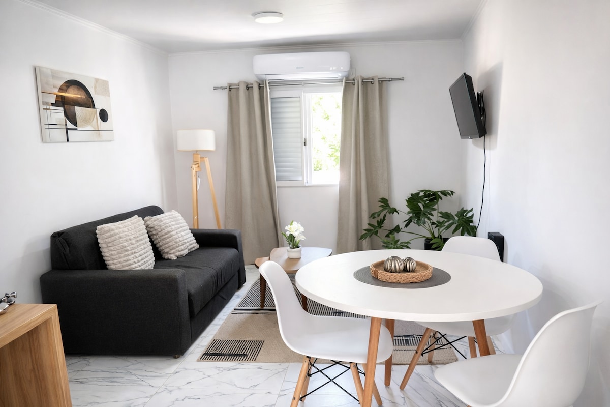 Aura Apart está ubicado en Reconquista, en la región de Provincia de Santa Fe, tiene balcón y una terraza con vista al jardín. Wifi gratis en todo el alojamiento. El departamento con aire acondicionado ofrece 2 dormitorios, living, cocina totalmente equipada con heladera, cocina, microondas, y cafetera. El baño con bidé y ducha cuenta con toallas, ropa de cama, y artículos de aseo personal. Escritorio ideal para tu area de trabajo mientras disfrutas con estilo tu cafe de la manana.