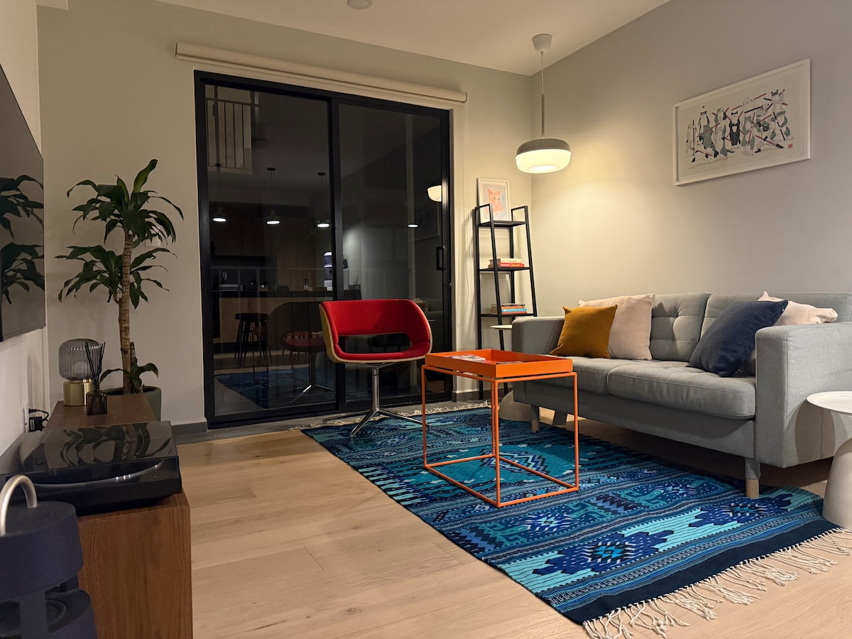 Goditi un appartamento luminoso, elegante e centrale, perfetto per soggiorni brevi o lunghi, lavoro a distanza o viaggi prolungati. Dispone di WiFi ad alta velocità da 200 Mbps e accesso a una palestra e a una terrazza sul tetto condivise, ideali per mantenere la tua routine e rilassarti all'aperto. Situato in una zona iconica di Città del Messico, circondato da cultura, architettura, mezzi pubblici e ottimo cibo, con un vivace mix di gente del posto e viaggiatori. A piedi: Monumento alla Rivoluzione a 1 km, Angel a 1,5 km, Roma a 2,5 km, Condesa a 3 km, Centro storico a 3,5 km