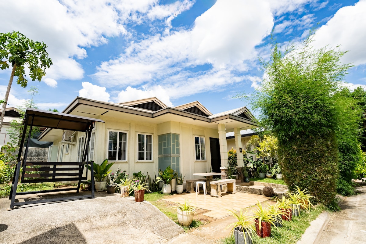 La nostra struttura si trova in un lotto di 120 m ² che include una mini piscina per bambini, il wifi collegato a 100mbps, pronto per Netflix, 3 camere da letto (2Br con aria condizionata), docce H&C, cucina completa, tavolo da pranzo a 6 posti, servizi completi, un quartiere tranquillo e un anticamera climatizzata dove tutti possono riunirsi per godersi un buon film. È un posto economico in cui soggiornare mentre ti godi il comfort della tua casa lontano da casa. Si adatta ai viaggiatori in vacanza, al lavoro o alle convention.