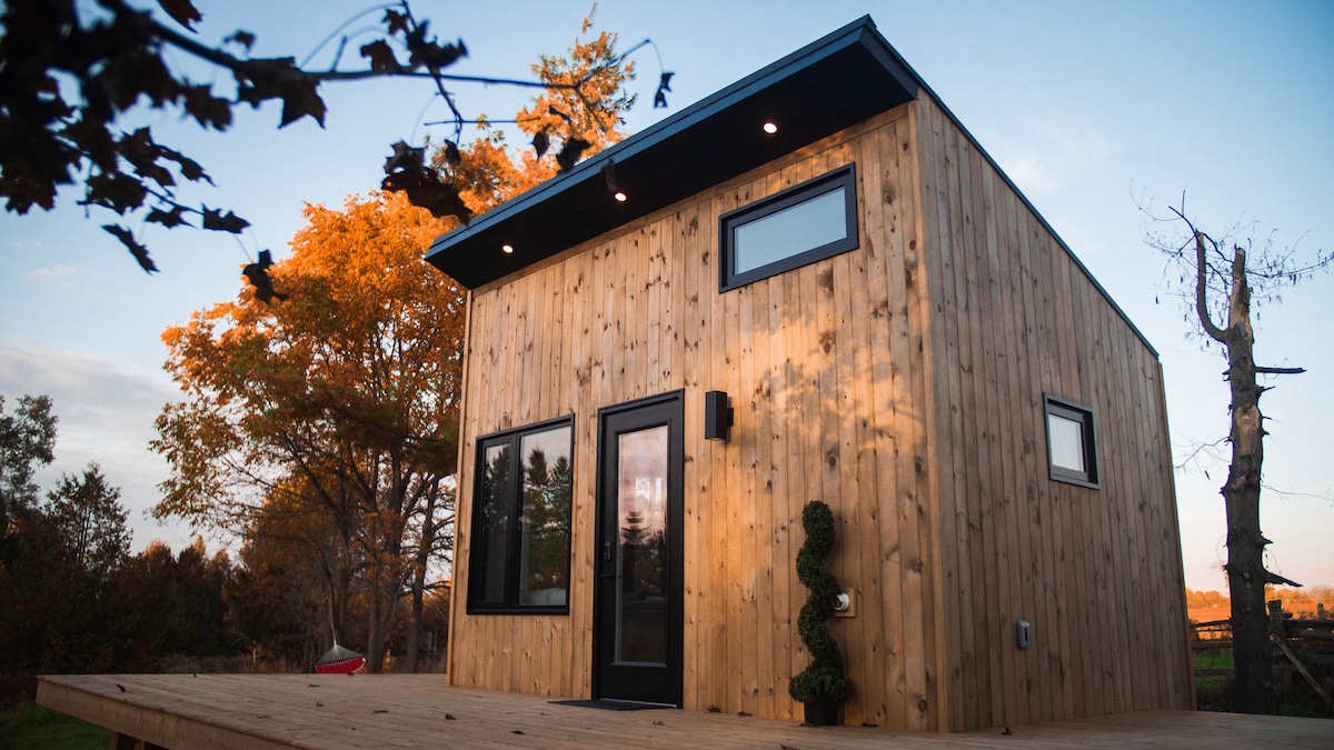 Welcome to the LOFT - A private, eclectically designed spa-inspired unique stay in the historic Webb Schoolhouse, less than an hour from Toronto. Featured in TORONTO LIFE, this private loft includes a sauna, unique hanging bed, wood stove, kitchenette and is filled with art, and huge tropical plants as well as a projector & giant screen for epic movie nights. Relax and recharge, roam the grounds and enjoy the beautiful outdoor spaces, the permaculture farm, animals, and fire pit.