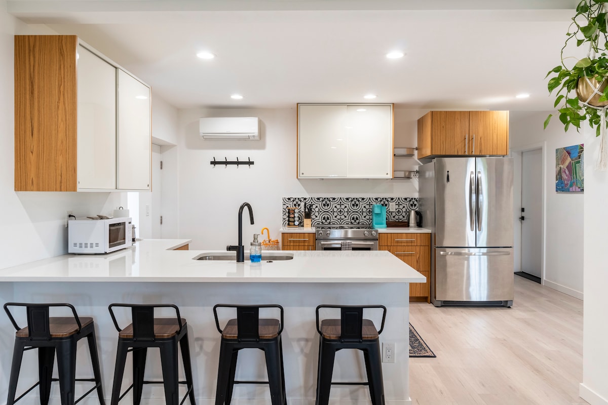 Lussuosa suite degli ospiti al piano inferiore con 1 camera da letto e 1 bagno di una casa moderna a Seward Park. La Guest Suite ha un open space, una cucina da chef di fascia alta con nuovi elettrodomestici e un ampio bagno personalizzato. Raggiungi a piedi la spiaggia sul lungolago del Martha Washington Park. A pochi minuti di auto da Seward Park, Columbia City con ristoranti, caffetterie, bar e PCC Community Markets. Navetta Metro Flex da/per la stazione della metropolitana leggera di Othello. Diverse linee di autobus su Rainier Ave S a un isolato dall'alloggio.