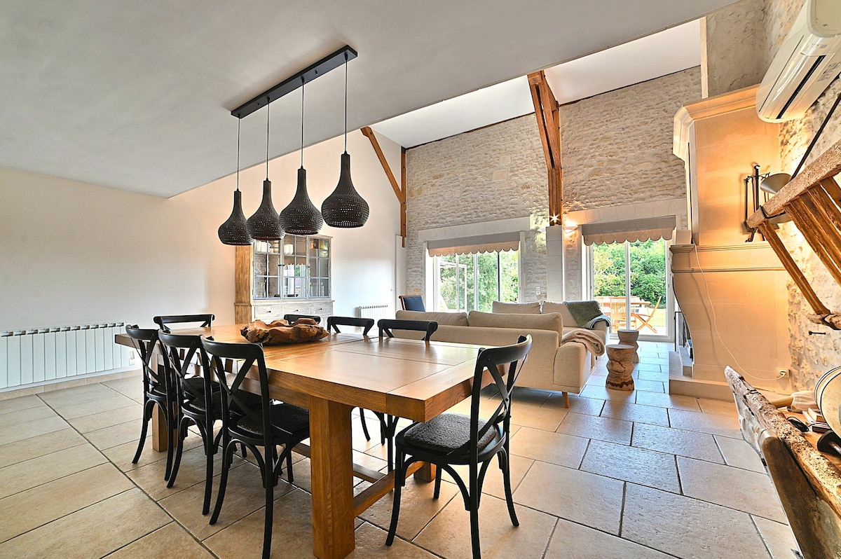 Benvenuti nel nostro tradizionale piccione del XIX secolo splendidamente restaurato, nel cuore della regione del Grande Champagne del Cognac. Ristrutturato con cura per offrire una spaziosa disposizione a pianta aperta con aria condizionata e un bruciatore a pellet, adatto a tutte le stagioni. Progettato per il massimo comfort, ogni dettaglio è stato realizzato per garantire un soggiorno indimenticabile, dai servizi moderni a quegli affascinanti tocchi rustici. Perfetto per feste speciali o una vacanza rigenerante. Il rifugio definitivo per il 2026.