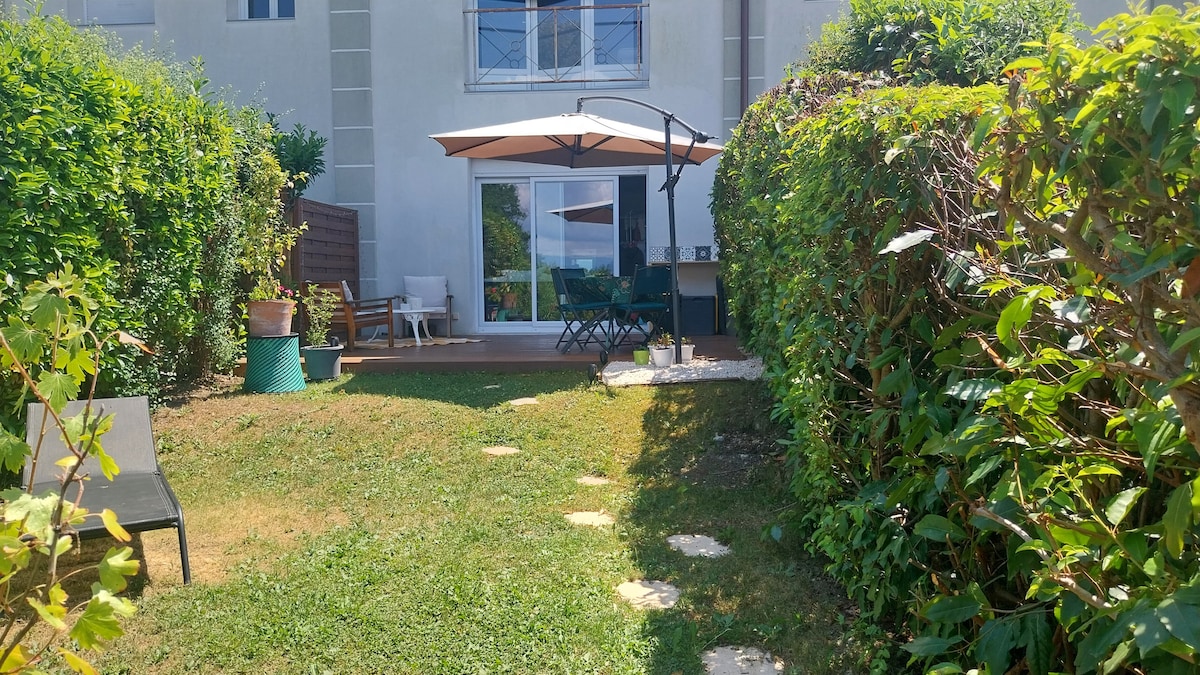 Appartamento al piano terra di una casa con vista panoramica sul Lago Lemano. Ideale per famiglie, nelle immediate vicinanze dei vigneti e di sentieri escursionistici. A 20 minuti dalle stazioni sciistiche di Thollon-les-Mémises e Bernex, a 50 minuti da Avoriaz e Châtel. Se cercate tranquillità e un ambiente bucolico a 5 minuti da Évian e Thonon, il nostro alloggio fa al caso vostro! Godetevi un bel soggiorno luminoso e una terrazza con vista sul lago. Biancheria di casa e asciugamani forniti.