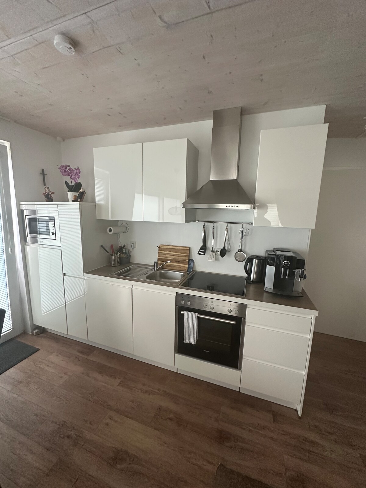 Self check-in/out 24 ore su 24, nuovo alloggio al piano terra, accesso indipendente, tranquillo, 57 mq soggiorno/cucina-camera da letto con divano letto, riscaldamento a pavimento, camino, grande cucina a vista completamente attrezzata. cucina, bagno, doccia, tavolo da pranzo con 4 sedie, appendiabiti, TV+Amazon Alexa, 2 letti come letto matrimoniale, 2 letti per gli ospiti e divano letto, Terrazza + parcheggio di fronte alla casa, 7 biciclette e 2 monopattini 350m-Aasee, 230m panettiere, 550m supermercato, 3km-City, 400m-A1/A43, 15m + 200m fermata dell'autobus, City+Uni: 12 min con bicicletta/autobus