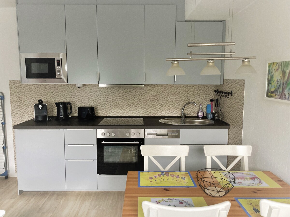 L'appartamento si trova nella frazione di Kley a Bösensell. Distanza da Münster 15 - dalla stazione ferroviaria 2,5 chilometri. Attraverso un ingresso separato si raggiunge il luminoso appartamento seminterrato. Può ospitare 2 persone su 60 m² con cucina completamente attrezzata, bagno, camera da letto con annesso soggiorno con TV.C'è anche un piccolo giardino separato con posti a sedere e capanno con serratura per le biciclette. L'appartamento dispone anche di un parcheggio privato.
