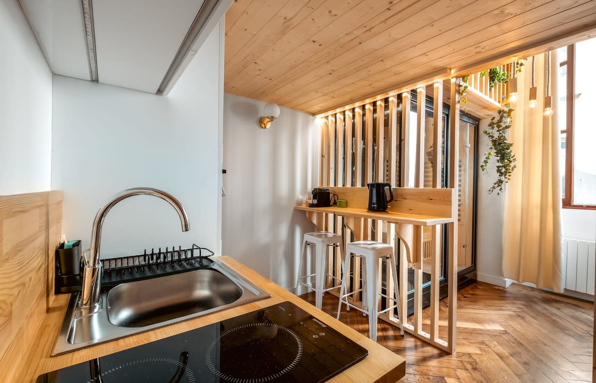 Concedetevi una fuga romantica in questa suite unica, ispirata all'atmosfera di Bali. 🛁 Area benessere privata: vasca idromassaggio, sauna 🛌 Camera confortevole, arredamento curato e tocchi esotici 🍽️ Cucina attrezzata per i pasti 📍 Posizione centrale, a 2 passi da negozi e ristoranti di Villefranche-sur-Saône 🔐 Arrivo autonomo 💫 Lenzuola, asciugamani e pulizia inclusi per un soggiorno sereno Prenota subito questo alloggio insolito, a meno di 30 minuti da Lione.
