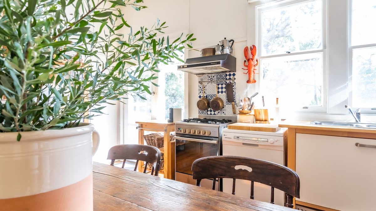 La tua vacanza primaverile perfetta ti aspetta a Thagg Haus, un cottage minerario secolare ricco di fascino. Situato nella contea di Bunurong, tra spiagge selvagge e dolci colline, è la base ideale per passeggiate costiere e gite in campagna. Dopo una giornata all'aperto, torna nel cuore soleggiato della casa, la nostra cucina di campagna, piena di luce. Goditi lunghi pranzi, bevande fresche vicino al braciere o una pizza fatta in casa appena sfornata. Il tempo trascorso a Thagg Haus è all'insegna dell'aria fresca, delle giornate dorate e dei piaceri semplici.