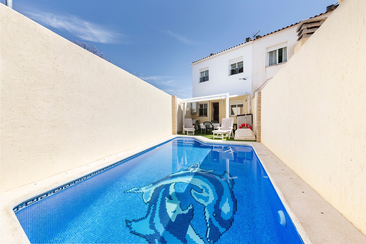 HEATED SALTWATER POOL Just 20 meters from the beach – the perfect place to rest, relax, and soak up the sun. Ideal for a romantic getaway or a fun family vacation. 3 bedrooms, all with direct access to the garden. Private pool with waterfalls. Relaxation area with loungers and garden sofas. 2 bathrooms, 1 guest toilet. Fully equipped kitchen. Living room with large windows and high ceilings. Mediterranean-style décor. Solarium with barbecue and stunning sea views.