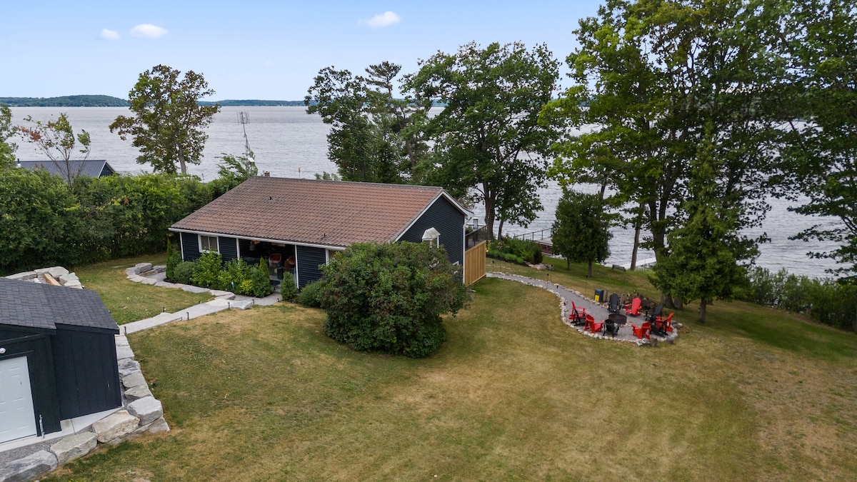 Enjoy panoramic views of Lower Buckhorn Lake with the family! Relax perched in the hot tub atop the rocks of the Canadian Shield, nestled among the tall pines. This newly updated waterfront cottage features 3 bedrooms & an open concept living space. Over 280 feet of waterfront for you to enjoy the sunrise & sunsets & fish off the dock! Get cozy on the couch, play games, or watch movies. Take a stroll around the island. Hi speed Wi-fi to work or play. 6 minutes to town, less than 2 hrs from GTA.
