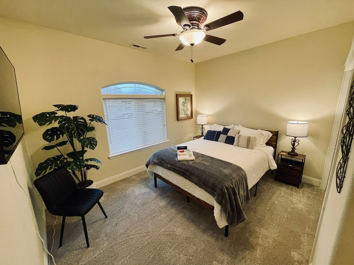 Benvenuto nella tua oasi di famiglia! Questo splendido rifugio 5BD vanta due camere da letto in stile suite, 3,5 bagni e una moderna cucina perfetta per cucinare insieme. Ritrovatevi nella spaziosa zona giorno o rilassatevi nella vasca idromassaggio dopo una giornata di avventure. Goditi la comodità del parcheggio in garage, della lavanderia in casa e di uno spazio ufficio per il lavoro da remoto. Situato a soli 5 km dall'aeroporto, avrai facile accesso a tutto ciò di cui potresti aver bisogno. Crea ricordi indimenticabili in questa vacanza ideale, prenota ora il tuo soggiorno! **Piscina chiusa**