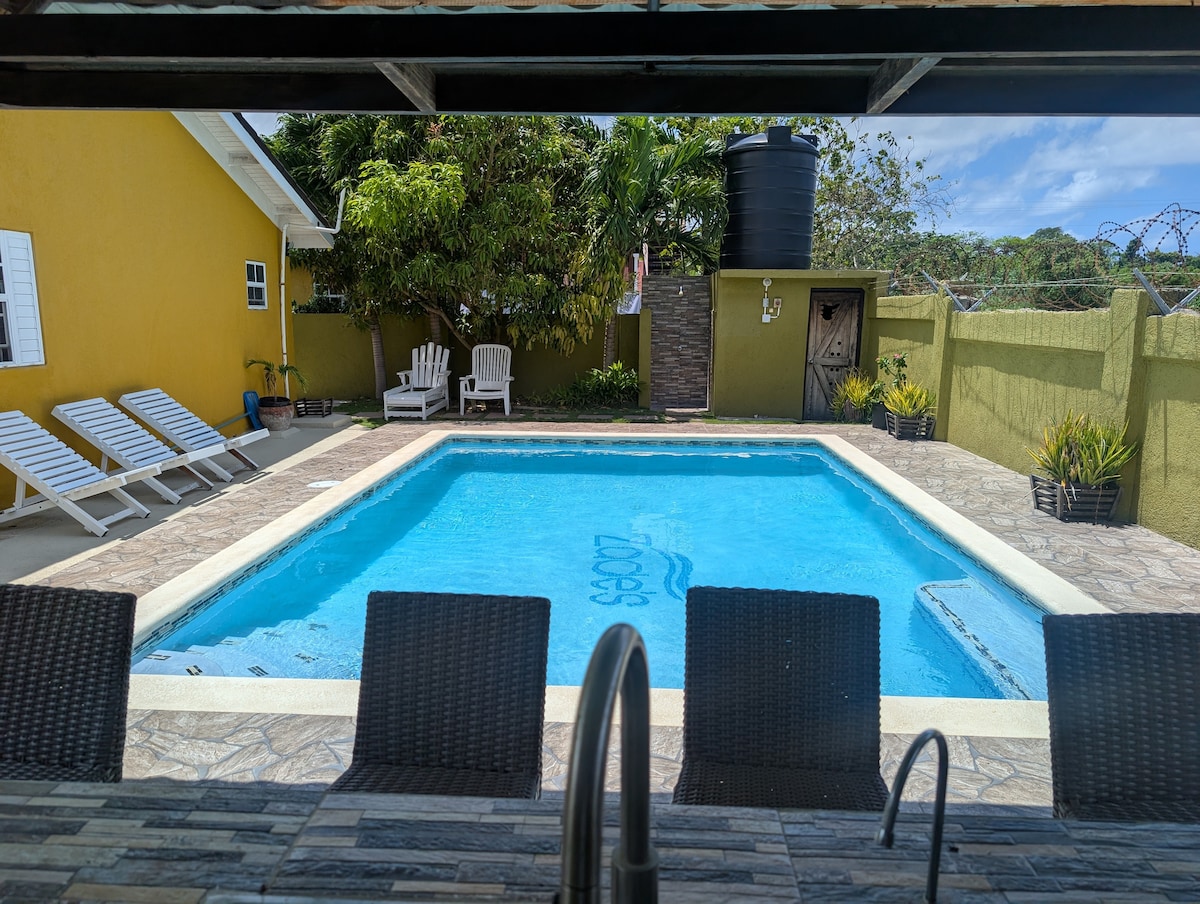 Una casa bella e rilassante all'interno di una comunità recintata sicura 24 ore su 24. È la vacanza perfetta con tutti i servizi: una piscina privata, aria condizionata e un'ampia TV a schermo piatto in ogni stanza e nei bagni singoli. Villa 354 è perfettamente situata proprio di fronte a Plantation Cove, dove si trova la famosa Rebel Salute. Le famose Ocho Rios, le cascate del fiume Dunn, la montagna mistica e il nuoto con i delfini sono a soli 10 minuti di distanza! Trasporto aeroportuale a basso costo $ disponibile!