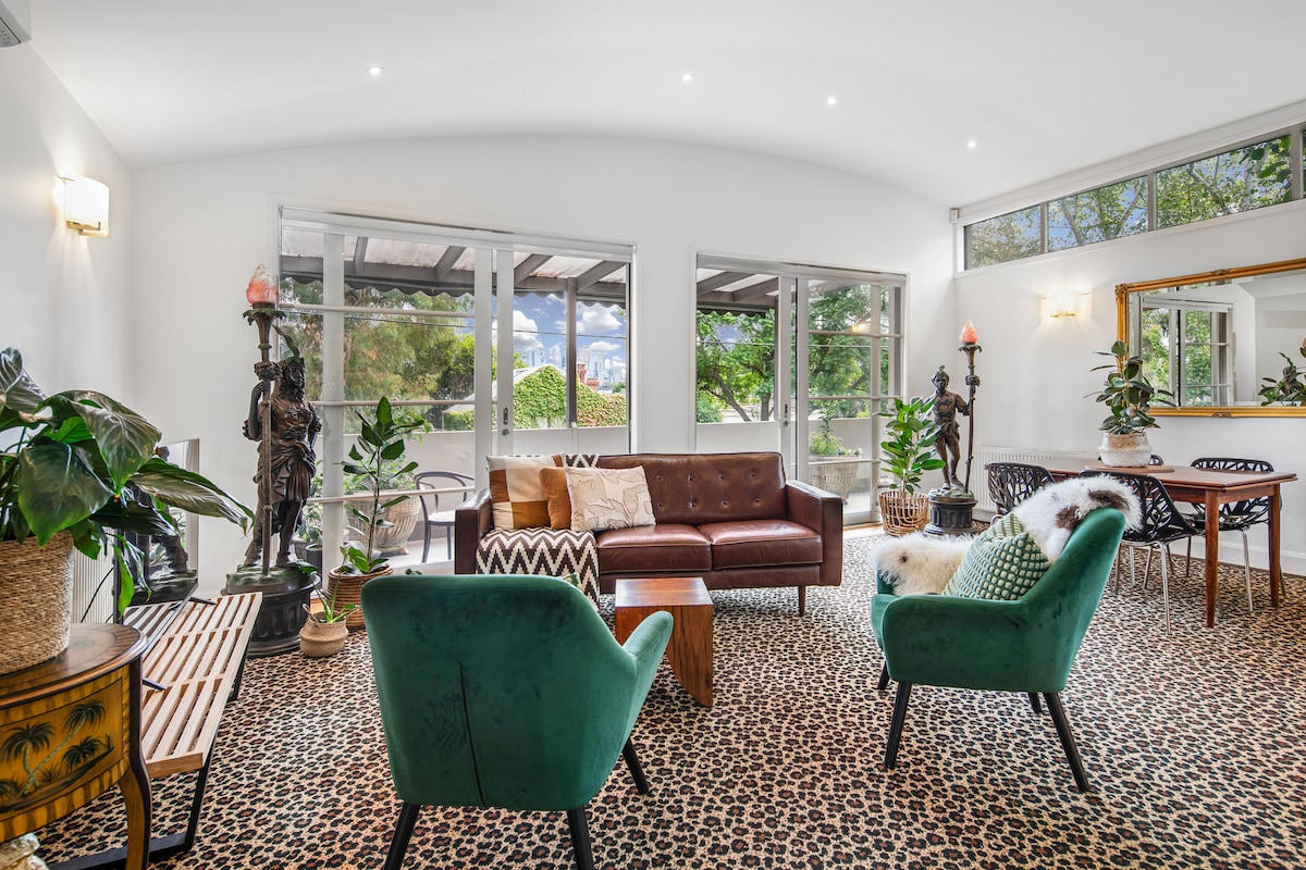 Questo cottage per lavoratori di 100 anni vanta interni su misura Le pareti e gli scaffali sono pieni di splendide opere d'arte, la casa ha pezzi vintage appositamente selezionati sparsi ovunque, i letti sono dotati di lenzuola di lusso e il salotto ha un divano a 3 posti da cui non vorrai più alzarti. Situato in posizione centrale, di fronte ai South Melbourne Markets, a pochi passi dal lago di Albert Park e a breve distanza in tram dal quartiere degli affari. Nota: niente TV, quindi porta i dispositivi se necessario.