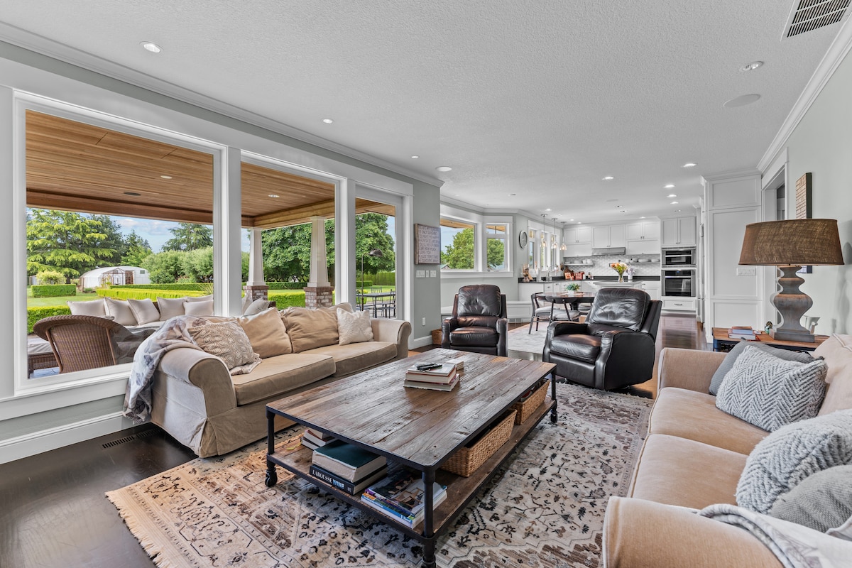 Animali domestici ammessi! Questa splendida casa di 2.634 piedi quadrati si trova su 5 ettari boschivi privati a Ridgefield, Washington! Vicino a molte cantine, escursioni e il casinò di ilani. A 25-35 minuti dall'aeroporto di Portland. La casa è dotata di tutto il necessario per una vacanza rilassante. La cucina è dotata di attrezzature per cucinare e cuocere al forno. C'è un'area giochi con molti giochi da tavolo, puzzle e un jukebox! La proprietà ha molte aree da esplorare, avventura e vasca idromassaggio!!!