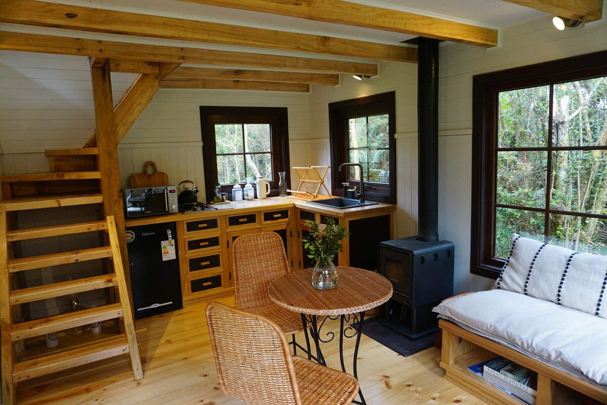 Immersa tra alberi e vegetazione selvatica, questa baita con una sola stanza offre un'esperienza intima nel cuore della natura. Per accedere, percorri un sentiero di circa 150 metri che attraversa la foresta e un piccolo ruscello, creando un ingresso magico. All'arrivo, la baita si rivela un rifugio sereno, ideale per staccare la spina e godersi la natura.