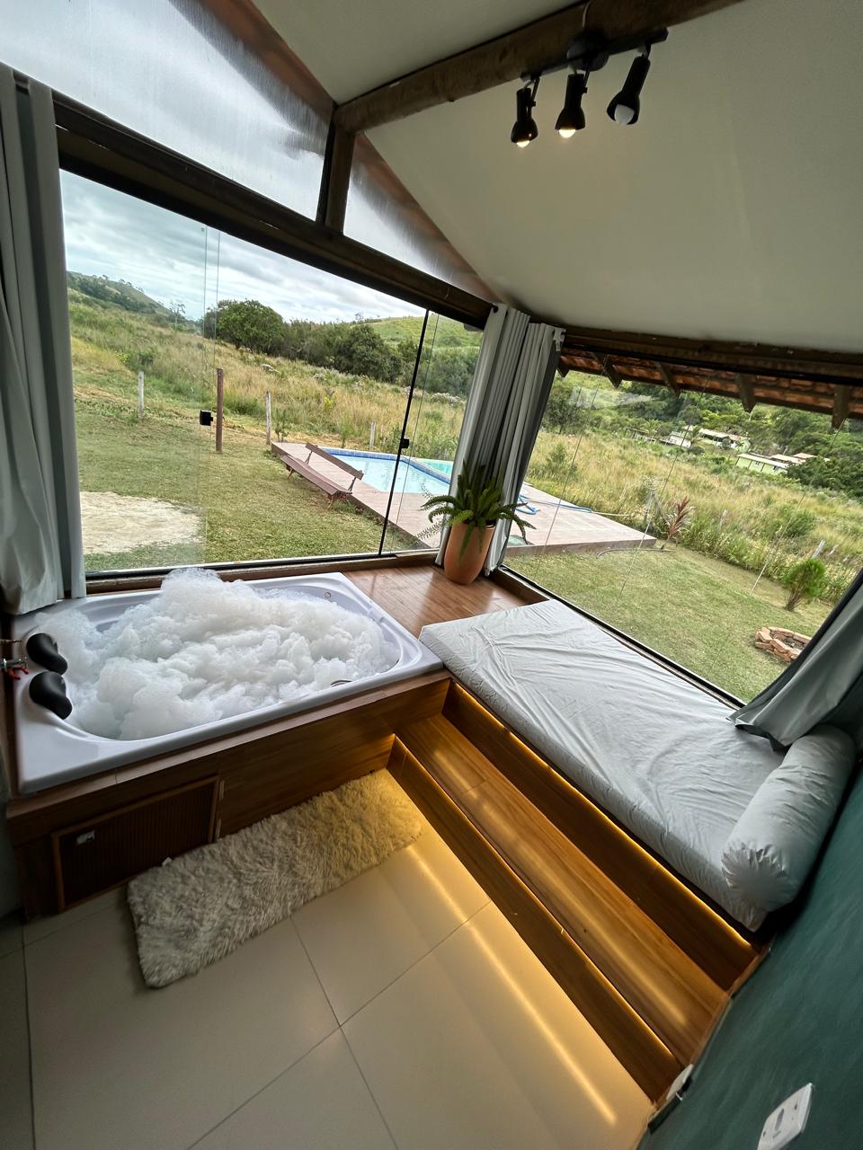 CAPANNA SENZA FATICA! L'accesso alla proprietà è attraverso l'asfalto, senza strada sterrata, senza buche. Rilassati in questo luogo unico e tranquillo con una vista spettacolare, comfort e privacy e vivi un'esperienza indimenticabile a contatto con la natura nella Vale das Videiras e approfitta della comodità di avere uno dei migliori ristoranti della regione, l'Estancia Eden, nello stesso complesso. Nota: Abbiamo un'area per l'atterraggio in elicottero.