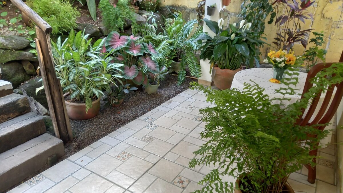 No bucólico bairro de Sta. Teresa, em muito arborizado terreno de 1000m² sobre dois níveis, no inferior se situam 2 unidades totalmente independentes que dividem jardim e piscina: Este Studio e o Ap (outro anuncio). Com vista do Cristo (Corcovado), montanha e Sambódromo (desfiles de Carnaval), estamos defronte a antiga igrejinha e ao lado de pracinha familial c/ bistrôs. Em casarão colonial e acesso independente, no platô superior residem os proprietários, sempre disponíveis para uma ajuda.