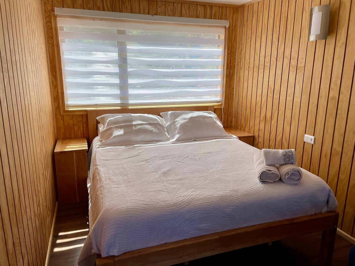 Piccolo chalet, quartiere centrale e tranquillo, con parcheggio privato, cucina attrezzata, riscaldamento paraffina, wifi, ecc. Si trova in calle Lautaro 374 interior, a due isolati dalla strada principale, a due minuti dall'ospedale e da altre zone vicine come carabineros, supermercati,restoran, bank state, ecc. In caso di disponibilità, possiamo venirti a prendere al traghetto, al terminal degli autobus o all'ingresso del confine di Chilena (valico di frontiera di Jeinimeni) a un costo aggiuntivo.